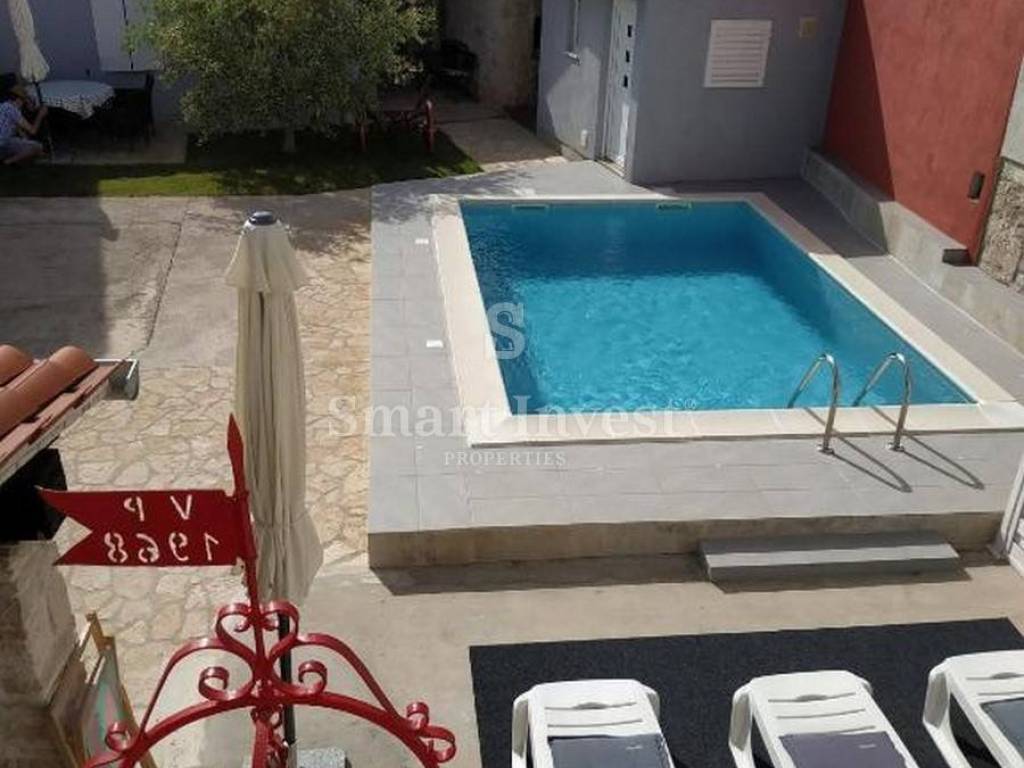 Zasebno, u donjem dijelu kuće smješten je apartman sa 1 spavaćom sobom, kuhinjom i kupaonicom, odvojeni dio sa prostorijom sa bilijarom, ostavom i strojarnicom.