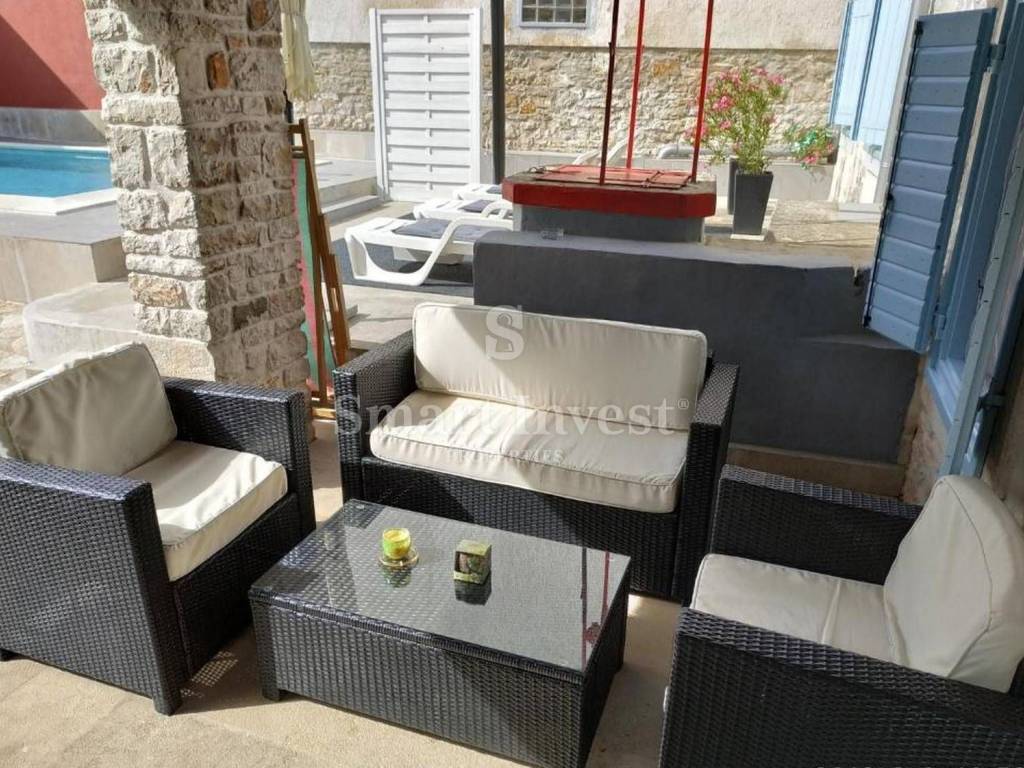 Kamena istarska kuća površine 200 m2 na istočnoj istarskoj obali, nedaleko kristalno čistog mora, kompletno je renovirana i u funkciji je turističkog najma već nekoliko godina sa lijepom popunjenosti.