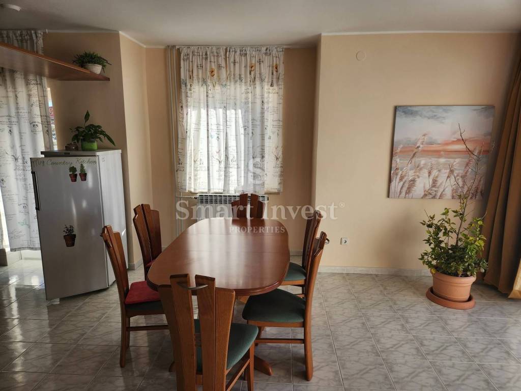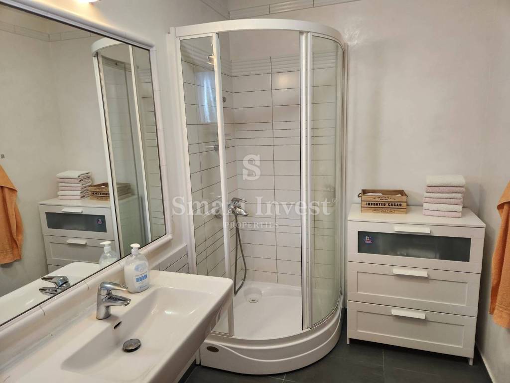 Na prvom i drugom katu prostire se 3-sobni stan s dnevnim boravkom, kuhinjom i blagovaonicom, vešerajem i ostakljenom verandom koja može imati višestruku funkciju. Stan ima centralno plinsko grijanje.