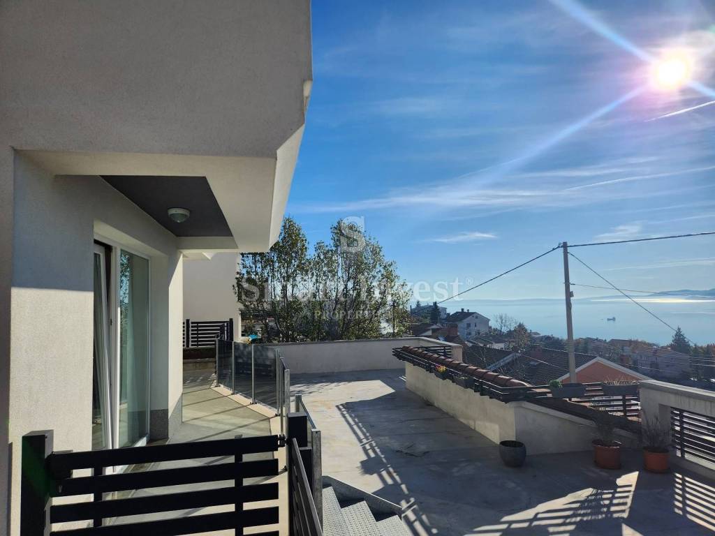 Kuća je vrlo prostrana i udobna za život, ima puno balkona i terasa a staklene stijene otvaraju ju prema moru. Okružena je urbanim villama u vrlo ugodnom dijelu Martinkovca za život, blizu svih sadržaja (dućana, restorana, spoja na autocestu), dok je od centra Rijeke i Opatije udaljena 10-ak minuta vožnje.
