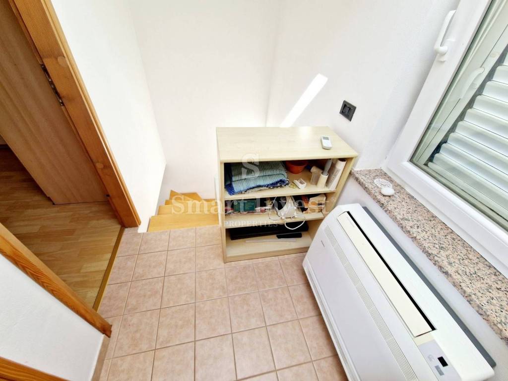 U prizemlju je prostorija koja služi kao dnevni boravak ali lako može biti i dodatna spavaća soba. Na prvom katu se nalazi kuhinja sa blagovaonicom i kupaonica. Na drugom katu su dvije spavaće sobe i kupaonica.