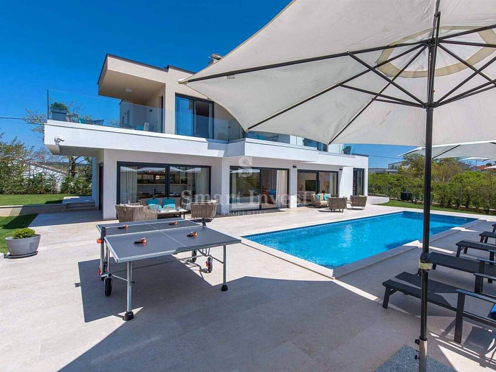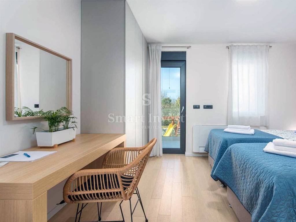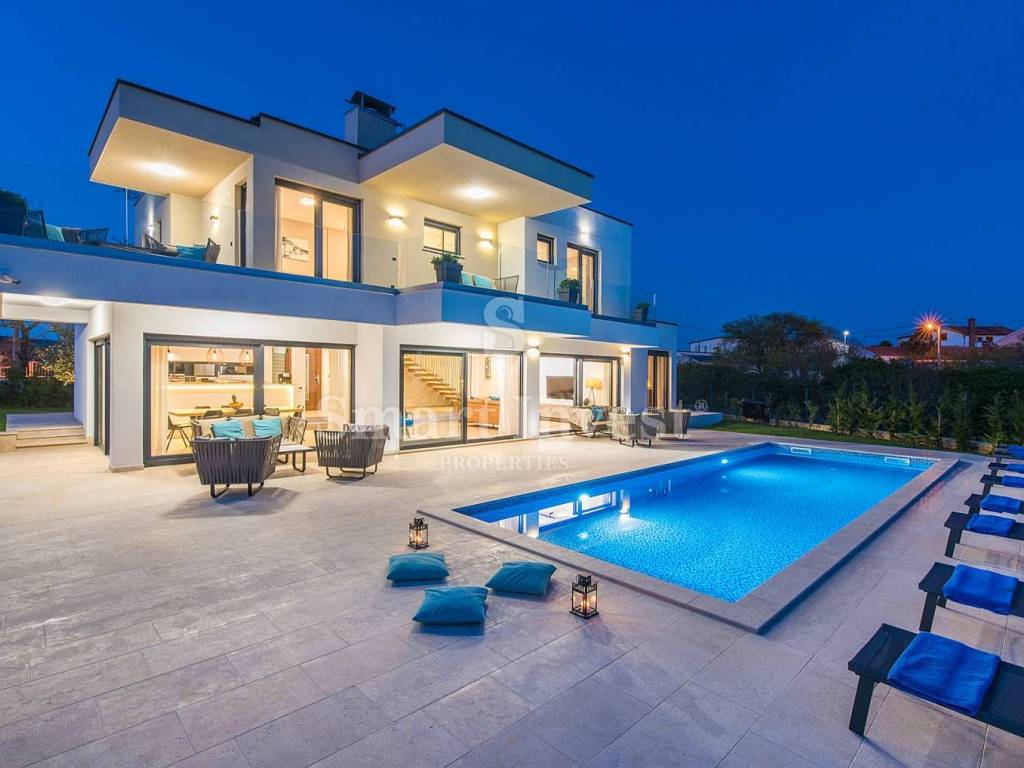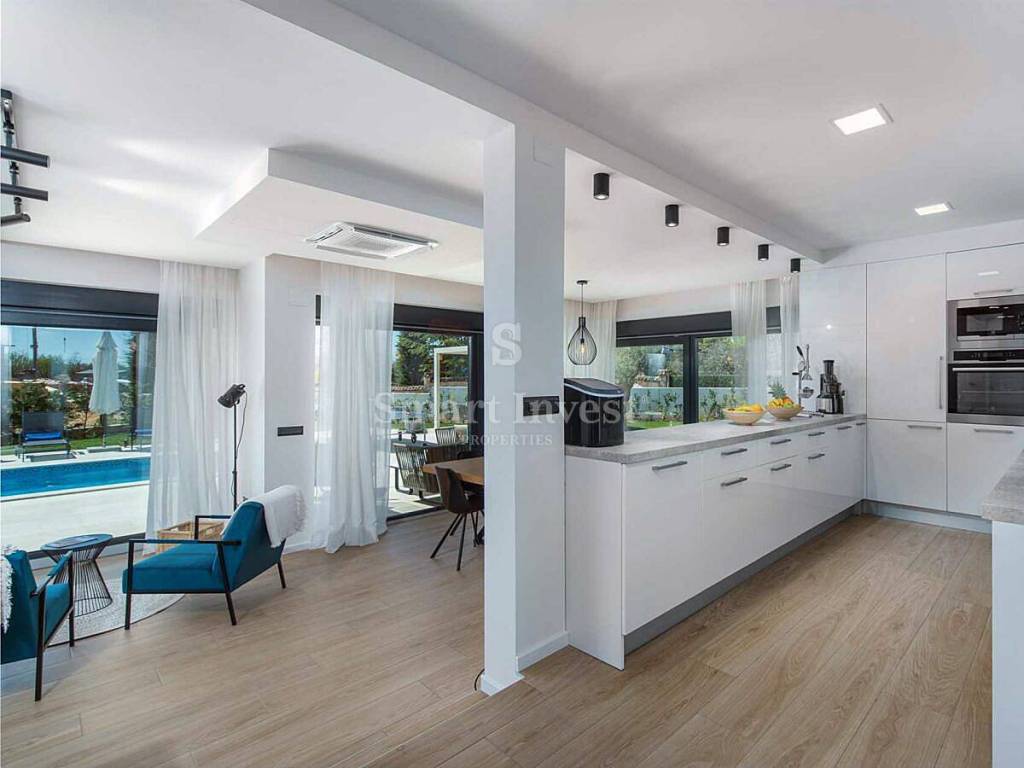 Unutrašnjost vile je moderno uređena i sve prostorije su kompletno opremljene. Grijanje/hlađanje kuće na dizalicu topline u kombinaciji podnog grijanja i fan coil sustava. Vila je opremljena video nadzorom i alarmom.