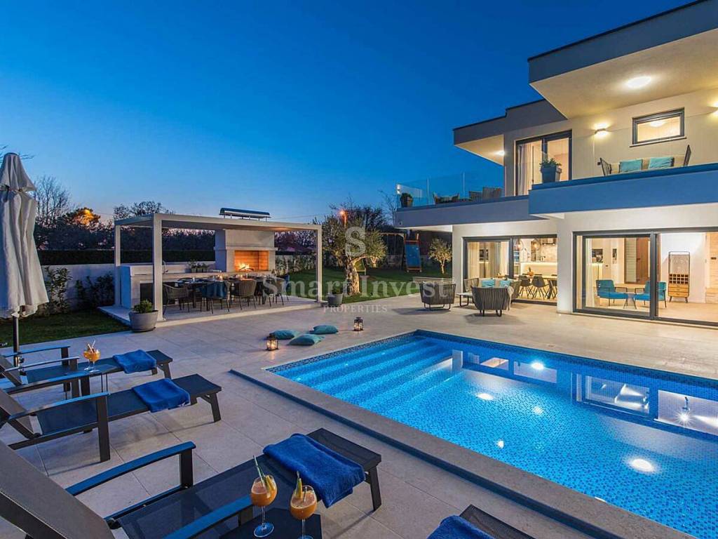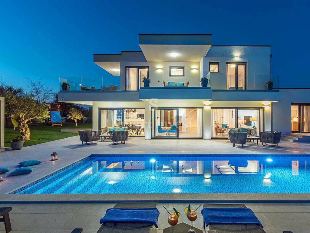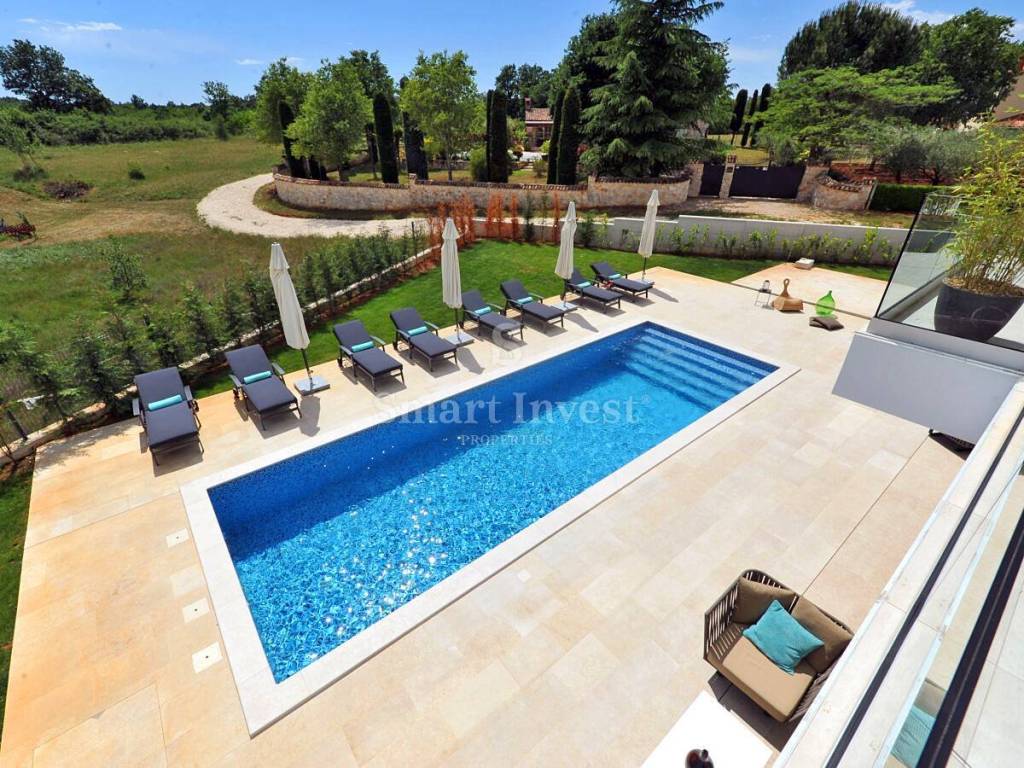 Na prodaju je atraktivna moderna vila s grijanim bazenom na lijepoj mirnoj lokaciji u malom istarskom selu nedaleko od Poreča.