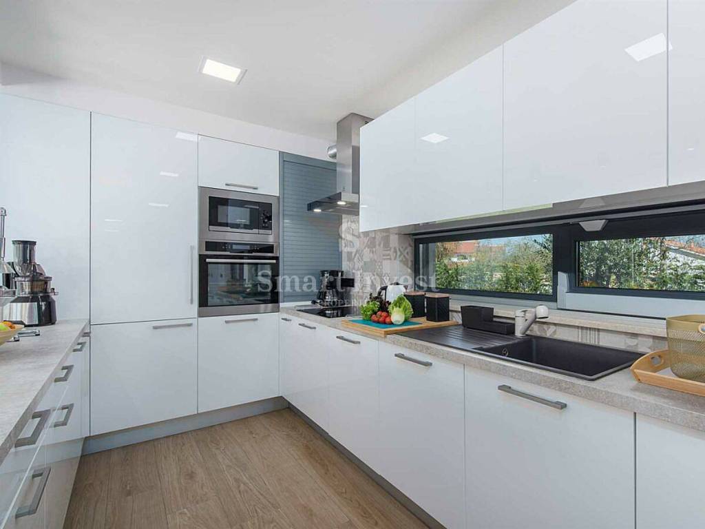 Kuća neto površine 201,38 m2 smještena je na lijepo uređenom zemljištu površine 1.065 m2, ima 4 spavaće sobe, 4 kupaonice + 1 WC.