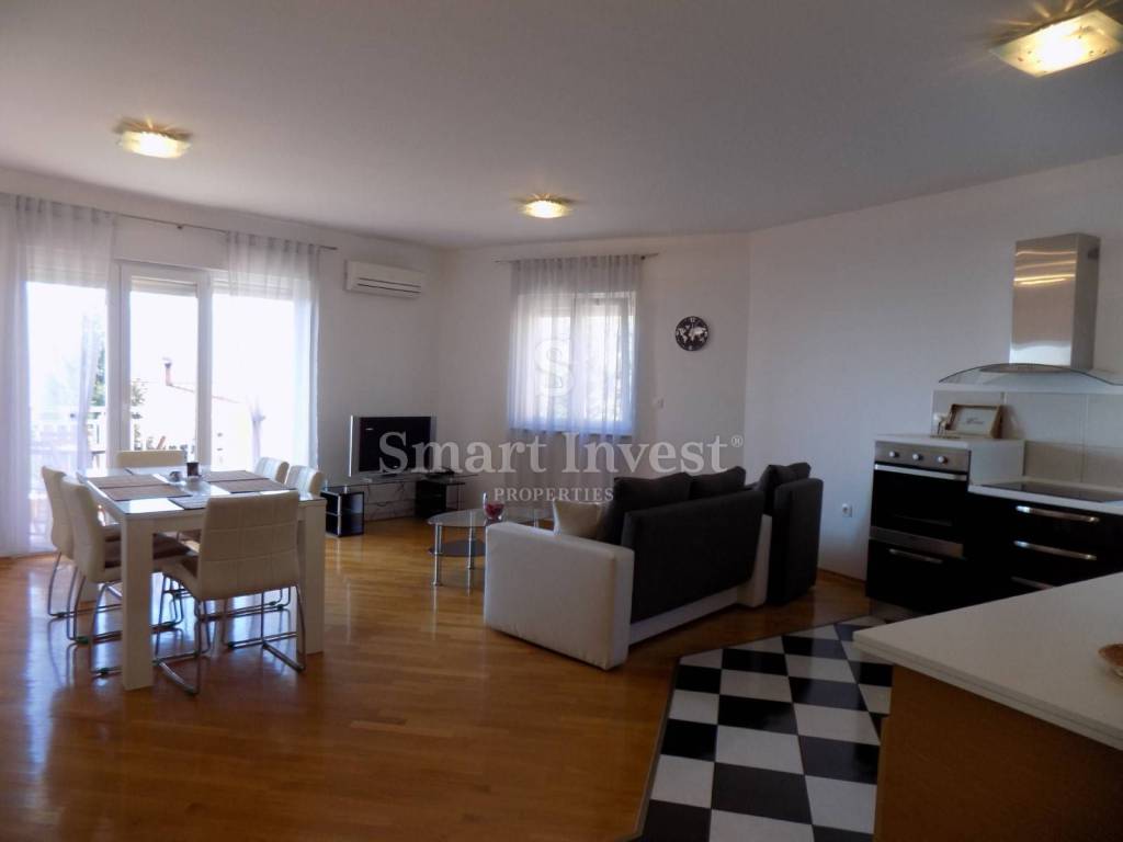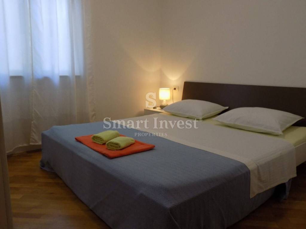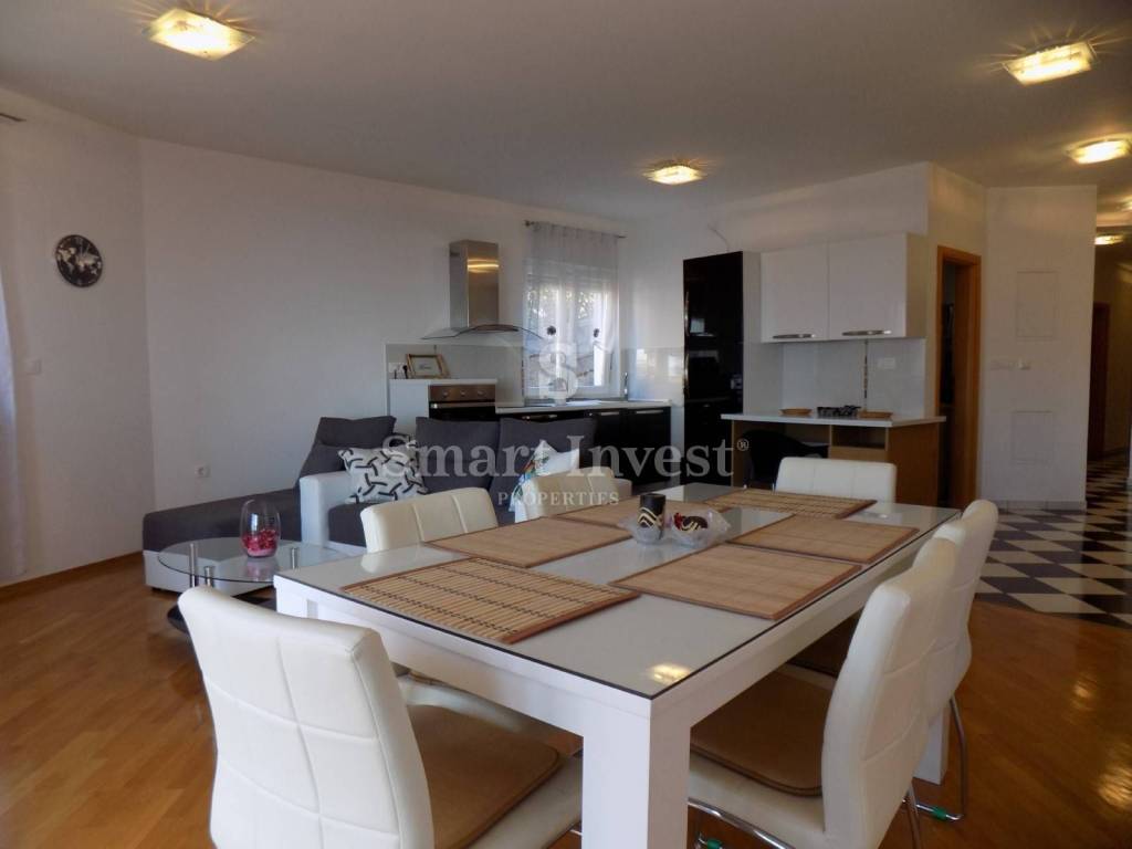 MARTINKOVAC, iznajmljuje se stan u novogradnji od 110 m2, 4s+db, na 1. katu s velikim balkonom i panoramskim pogledom na more. Stan je kompletno uređen i namješten, vrlo lijepo i kvalitetno, ima podno grijanje, vanjski parking i garažno parkirno mjesto.