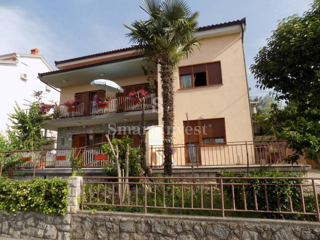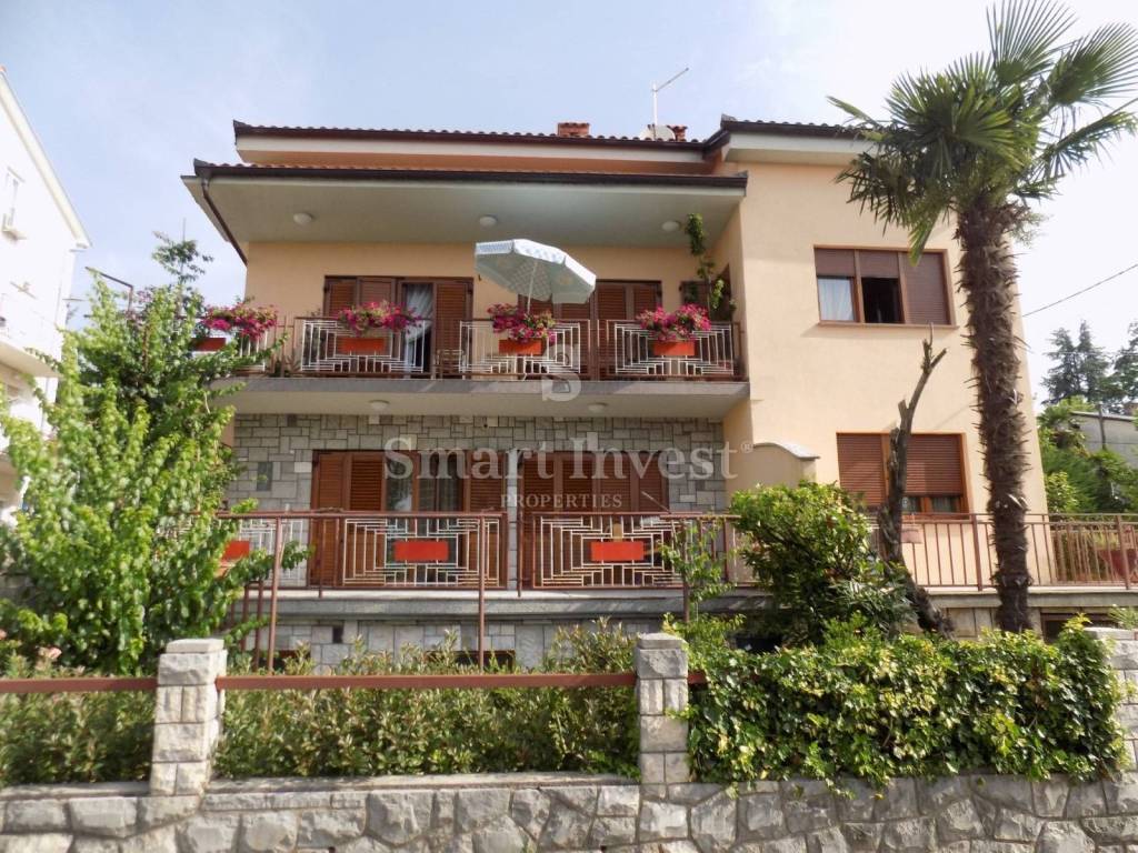 LOVRAN, Na prodaju je dvojna kuća površine 300 m2 koja se sastoji od suterena, 1-sobnog stana u prizemlju, 3-sobnog stana na katu te visokog potkrovlja koji je u roh-bau fazi.