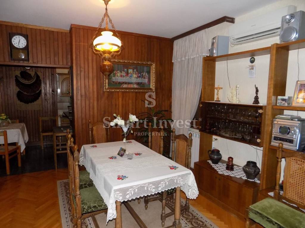 Kuća ima ljetnu kuhinju s kaminom, garažu i vinski podrum s kotlovnicom, balkon i natkrivenu terasu. Lijepo je uređena, ima novu stolariju i fasadu.