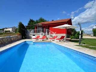Uz kuću se na ograđenoj i uređenoj okućnici nalazi bazen sa sunčalištem i natkrivena ljetna kuhinja s otvorenim kaminom.