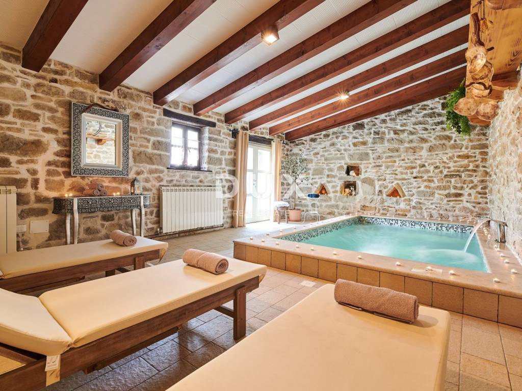 ISTRA, GRAČIŠĆE RUSTIKALNA VILA S UNUTARNJIM I VANJSKIM BAZENOM, SAUNOM I SPOJEM LUKSUZA I AUTENTIČNOSTI