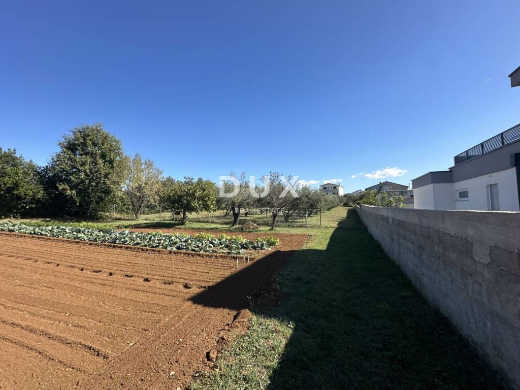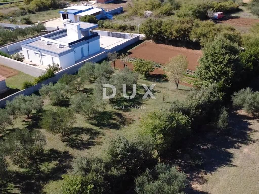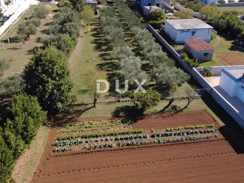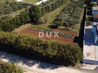 Pristup zemljištu je novim asfaltiranim putem, a sva komunalna infrastruktura nalazi se odmah uz teren voda, struja i telefonska linija. Parcela je gotovo potpuno nivelirana i održavana, očišćena od kamena, ograđena visokom živicom koja pruža privatnost. Na zemljištu se nalazi i stari maslinik s dvanaest stabala.