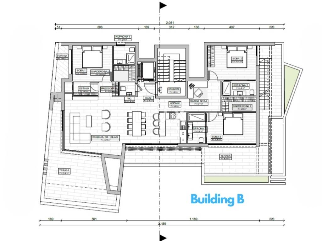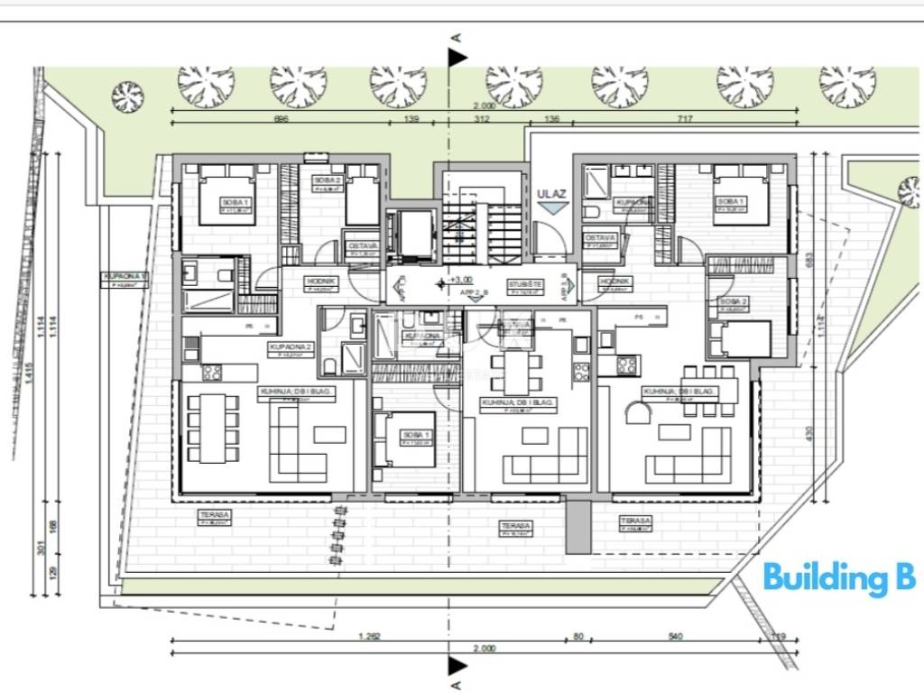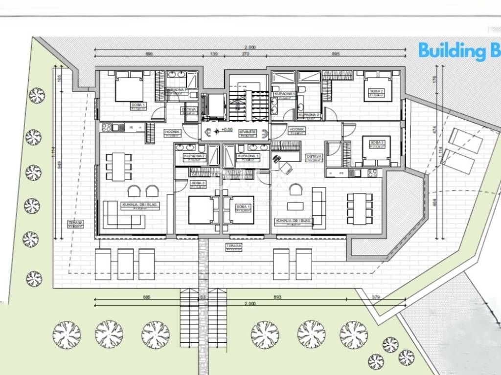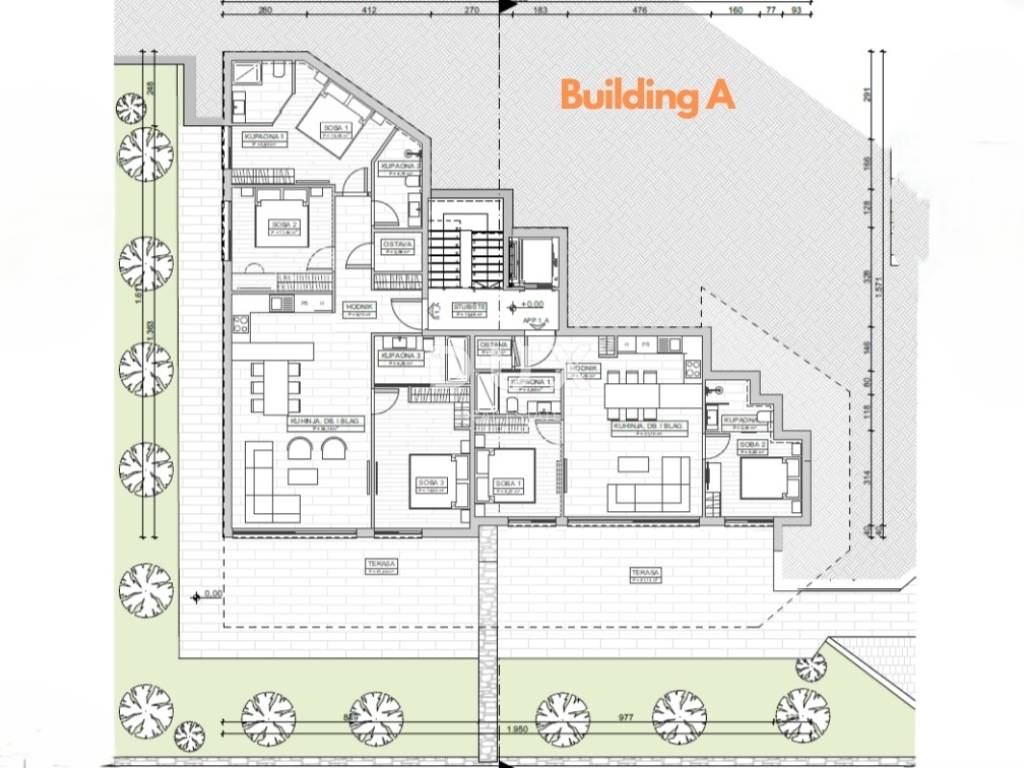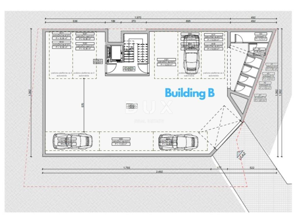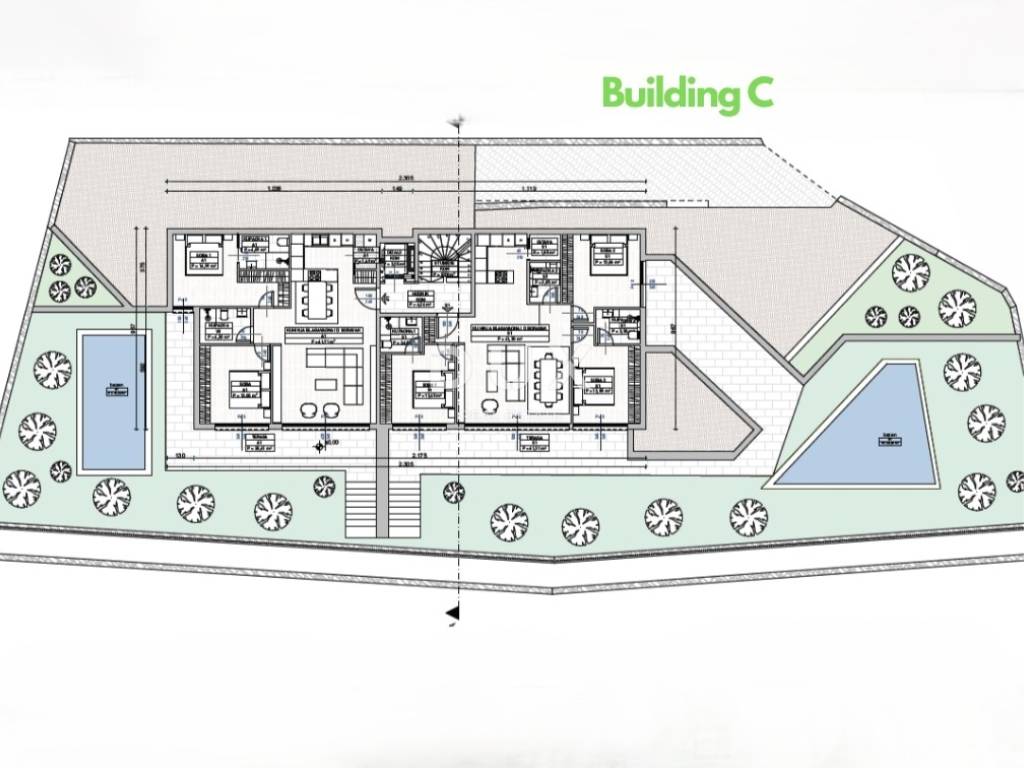 Površina gradilišta iznosi približno 800 do 880 m, a već postoji plan parcelacije. Na svakom zemljištu može se izgraditi zgrada sa šest luksuznih stanova s garažom, terasama i bazenima. Sveukupno, prodajna površina iznosi otprilike 650 m x 3 gradilišta = 1950 m prodajnih kvadrata. Na ovim pozicijama, umjesto stanova, mogu se izgraditi i tri raskošne vile s bazenima. Za gradnju stanova već postoje idejna rješenja (vizualizacije).
