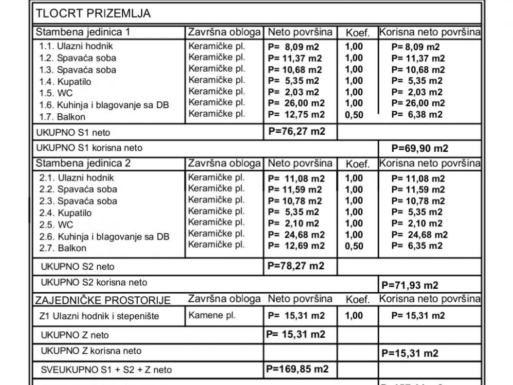 U ponudi imamo stan u prizemlju koji se sastoji od ulaznog hodnika, dvije spavaće sobe, kupaonice, WC-a, kuhinje, blagovaonice i dnevnog boravka te balkona m2.