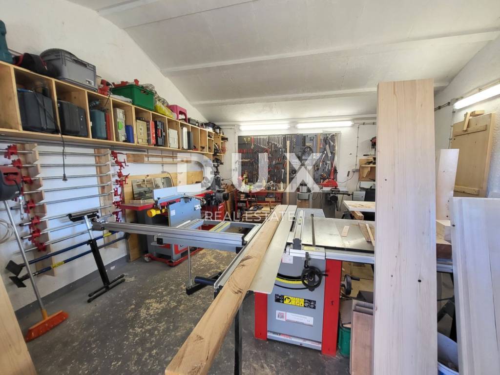 Na potpuno ograđenoj okućnici površine 664 m2, smjestila se garaža s nadstrešnicom, sunčalište s bazenom površine 28 m2, pomoćni objekt predviđen za ljetnu kuhinju, roštilj te spremište.