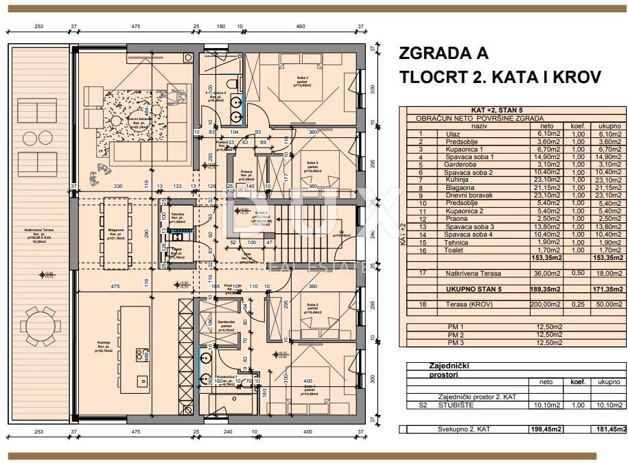 velikog otvorenog prostora u kojem se nalaze dnevni boravak, blagovaonica i kuhinja, s direktnim izlazom na prostranu natkrivenu terasu