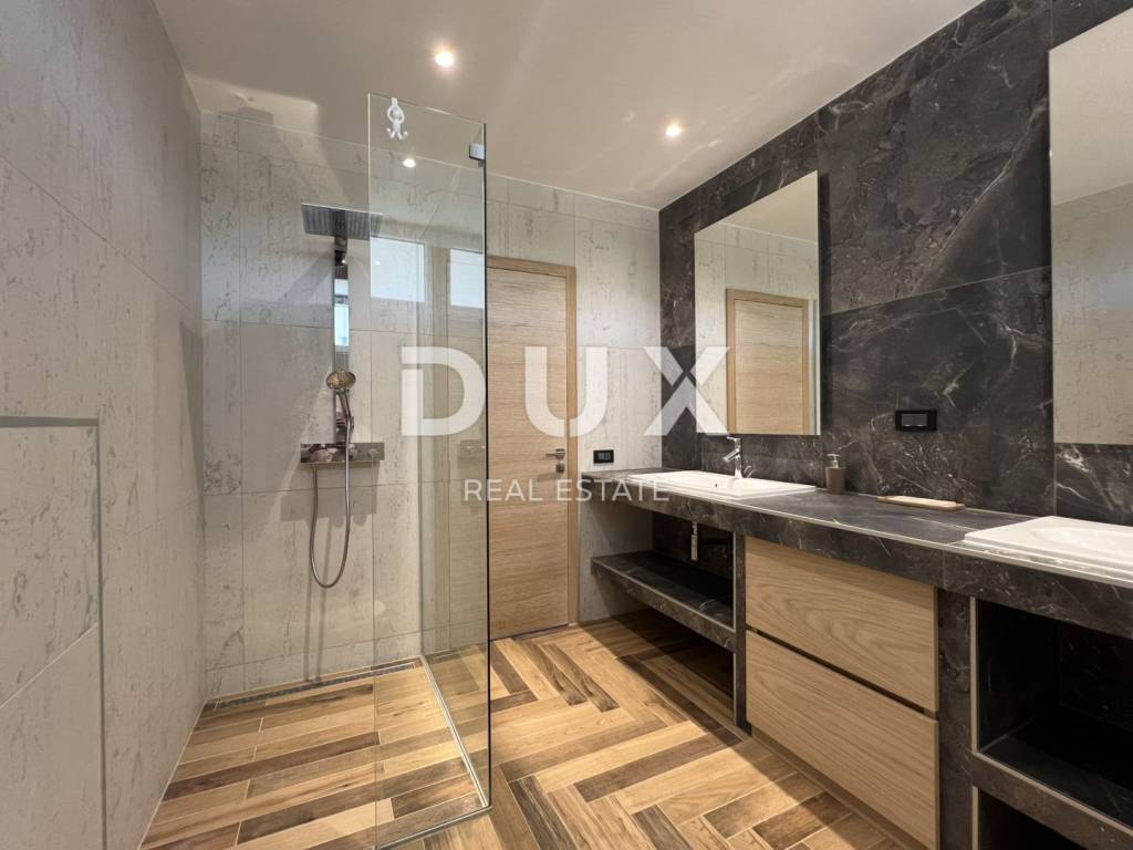 Na katu se nalaze dodatne dvije glavne spavaće sobe koje se ističu luksuznim detaljima svaka ima prostranu natkrivenu terasu s predivnim pogledom na more. Jedna je opremljena elegantnom kadom, dok druga nudi privatnu finsku saunu za potpuni ugođaj.