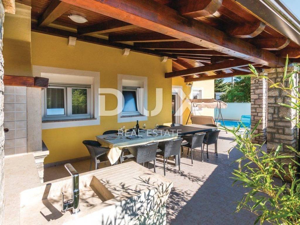 Na lijepo uređenoj okućnici nalazi se bazen površine 24 m2 i natkrivena terasa s roštiljem.