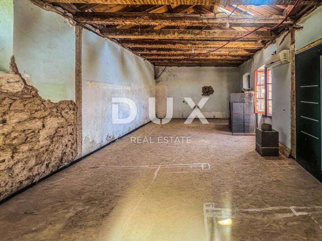 Kuća ukupne površine 104 m prostire se na dvije etaže i omogućuje izvedbu tri odvojena apartmana, svaki s vlastitim ulazom izvrsna prilika za turistički najam ili višegeneracijsko stanovanje. Renovacija je započeta krov je nov, izvedeni su novi podovi, a završni radovi (obloge, instalacije, uređenje interijera) prepušteni su budućem vlasniku za dovršetak prema vlastitom stilu i željama.