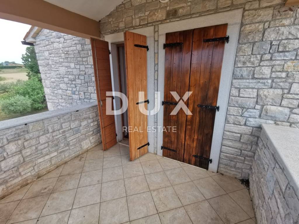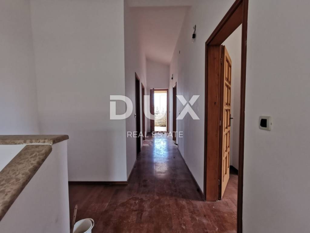 U neposrednoj blizini Poreča smjestila se ova kuća na tri etaže ukupne površine 180 m2. Kuća se sastoji od prizemlja koje može poslužiti kao teretana, sauna, garaža, društvena prostorija ili nešto drugo po želji budućeg vlasnika. Dalje se penjemo na visoko prizemlje gdje se nalaze dnevni boravak s kuhinjom i blagovaonom, kupaona, hodnik i ostava, dok se na katu nalaze 3 spavaće sobe koje dijele zajedničku kupaonicu. Također, 2 spavaće sobe imaju izlaz na zajedničku terasu s koje se pruža predivan panoramski pogled na more. Podovi su popločeni keramičkim pločicama i laminatom, provedena je prva faza za centralno grijanje a stolarija je drvena.