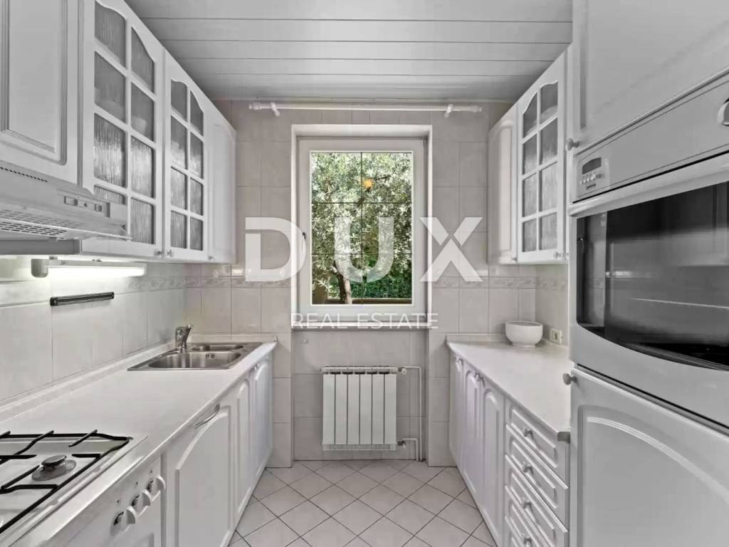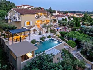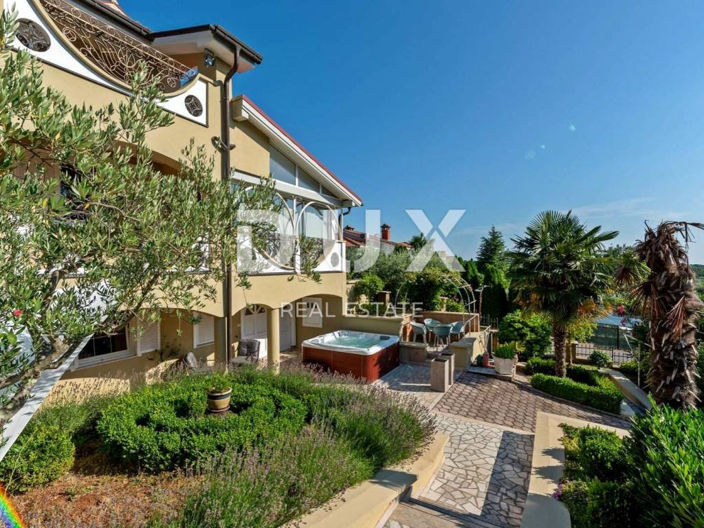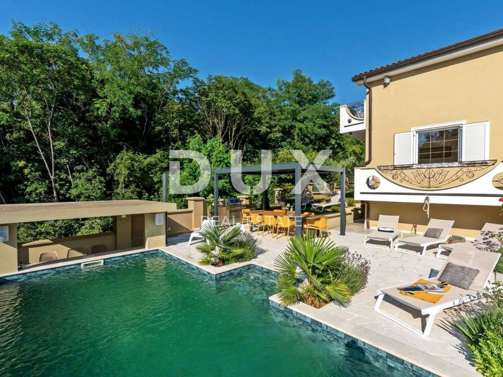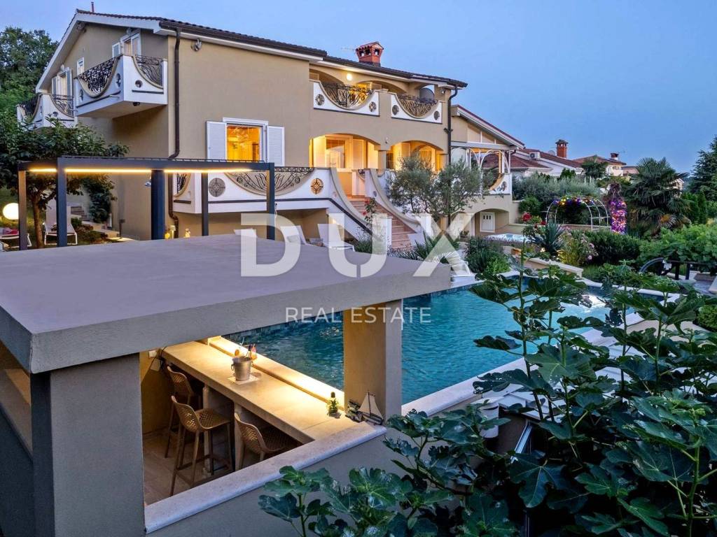 Prostrana okućnica koja obiluje zelenilom i cvijećem i raslinjem je ograđena i uređena do najsitnijeg detalja a savršen sklad zaokružuje bazen sa sunčalištem i elegantno ukomponiranom lounge zonom i natkrivena ljetna kuhinja.