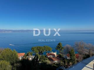OPATIJA, RIVIERA - zemljište za izgradnju obiteljske kuće s bazenom 300m od plaže, panoramski pogled na more