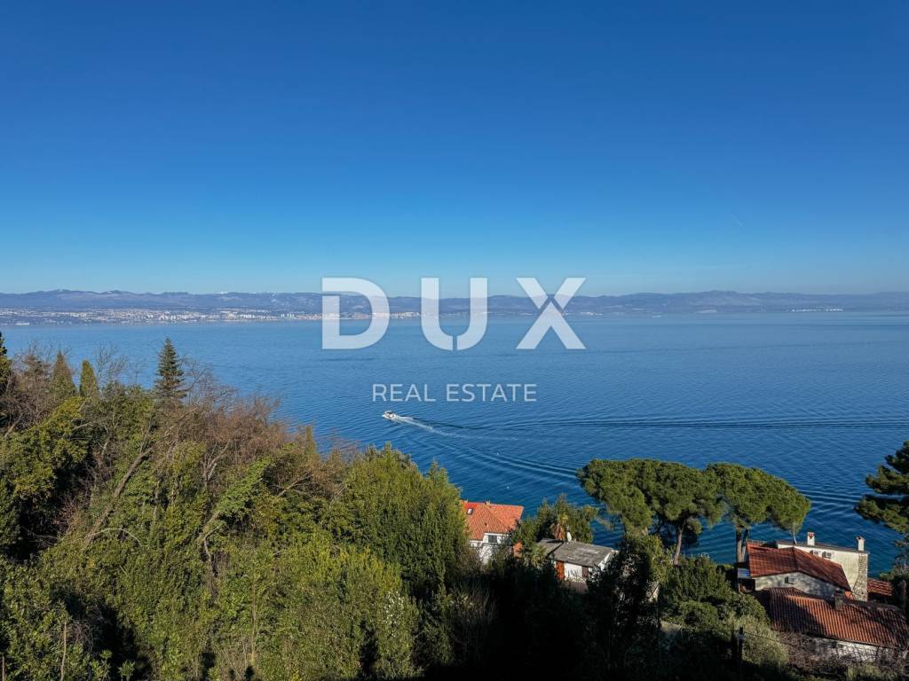 OPATIJA, RIVIERA - zemljište za izgradnju dvije kuće s bazenom 300m od plaže, top pozicija, panoramski pogled na more