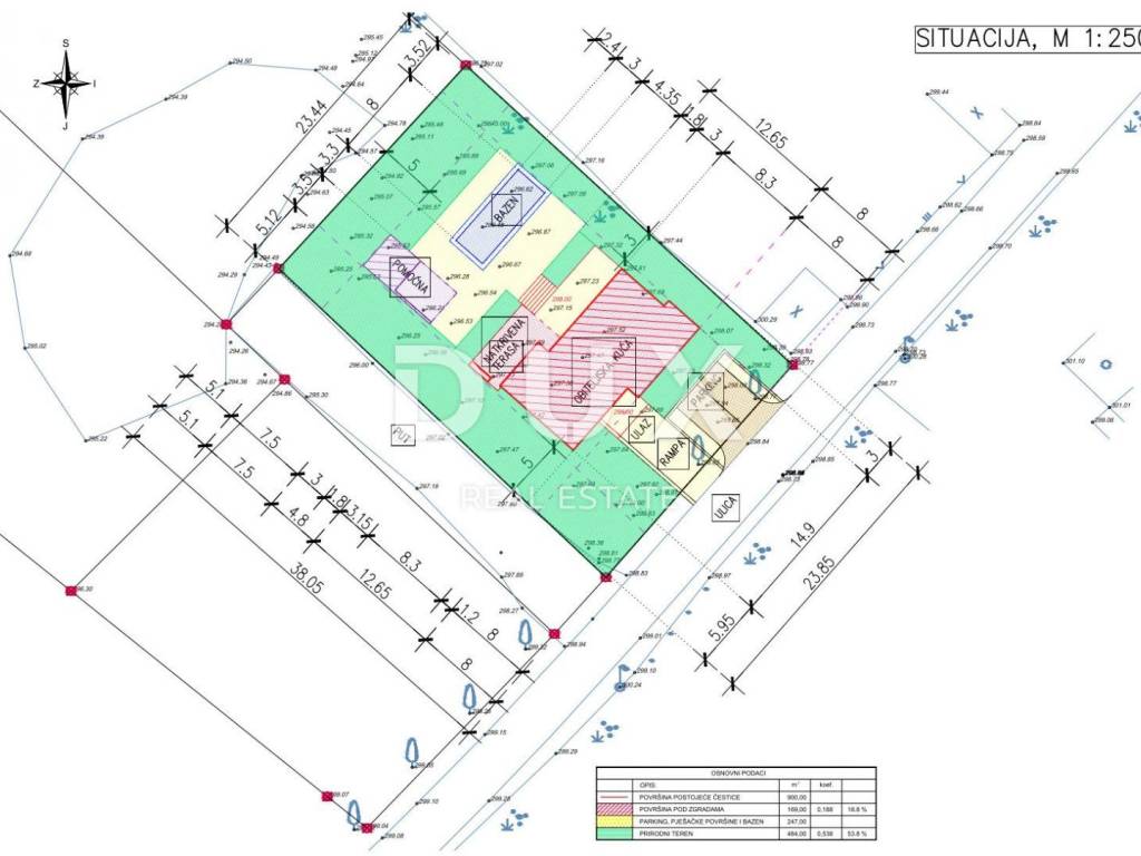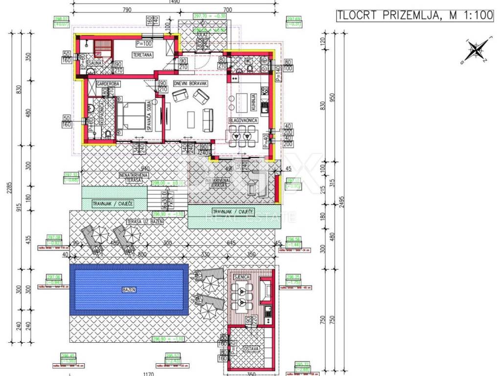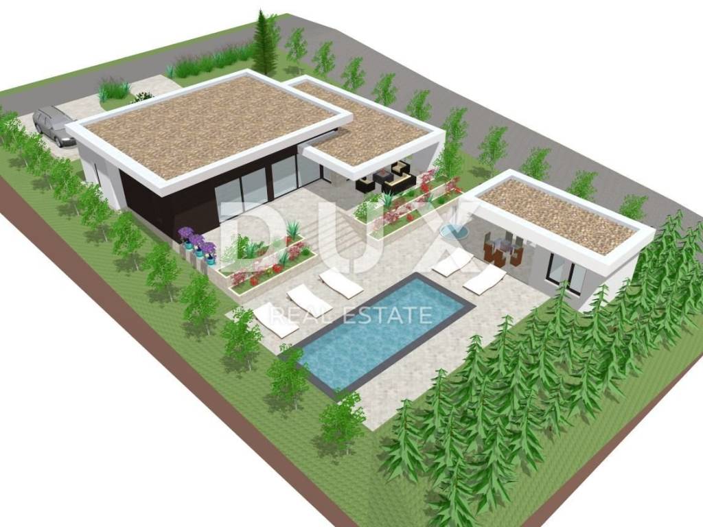 Prodaje se građevinsko zemljište s projektom za vilu s bazenom i vanjskim objektom površine 900 m2.