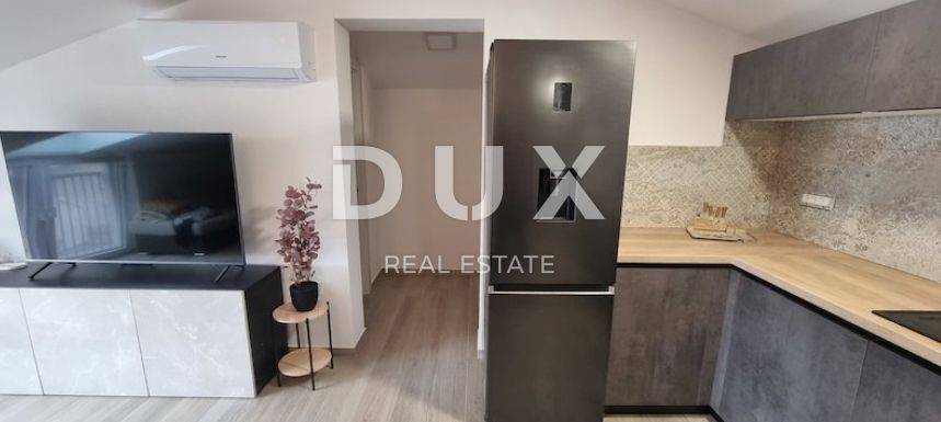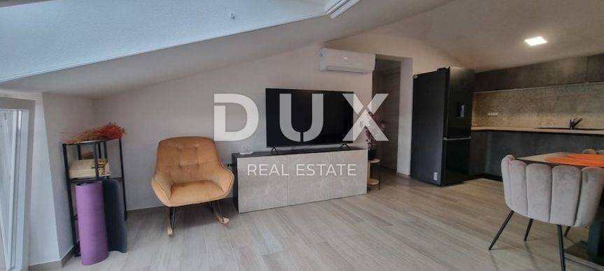 Stan se sastoji od kuhinje sa dnevnim boravkom i blagovaonicom, dvije spavaće sobe, kupaonice i ostave. Nekretnina je kompletno namještena i kao takva se i prodaje. Pripada mu jedno parkirno mjesto. Ispred zgrade nalazi se i prostor za bicikle. Zbog svog položaja stan ima lijepi pogled na more i Kvarner.