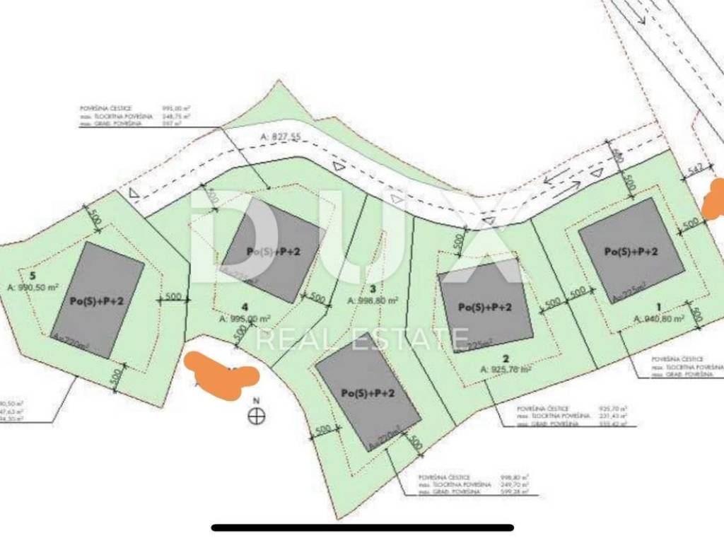 Građevinsko zemljište od 6500 m2 za gradnju 5 objekata.