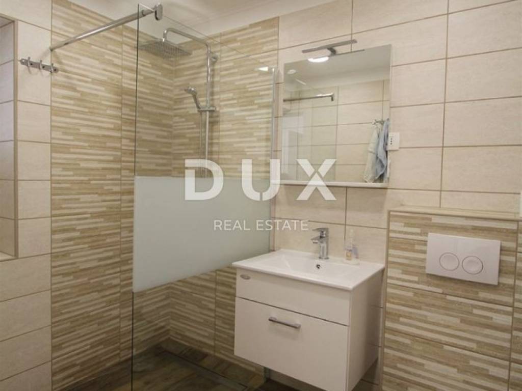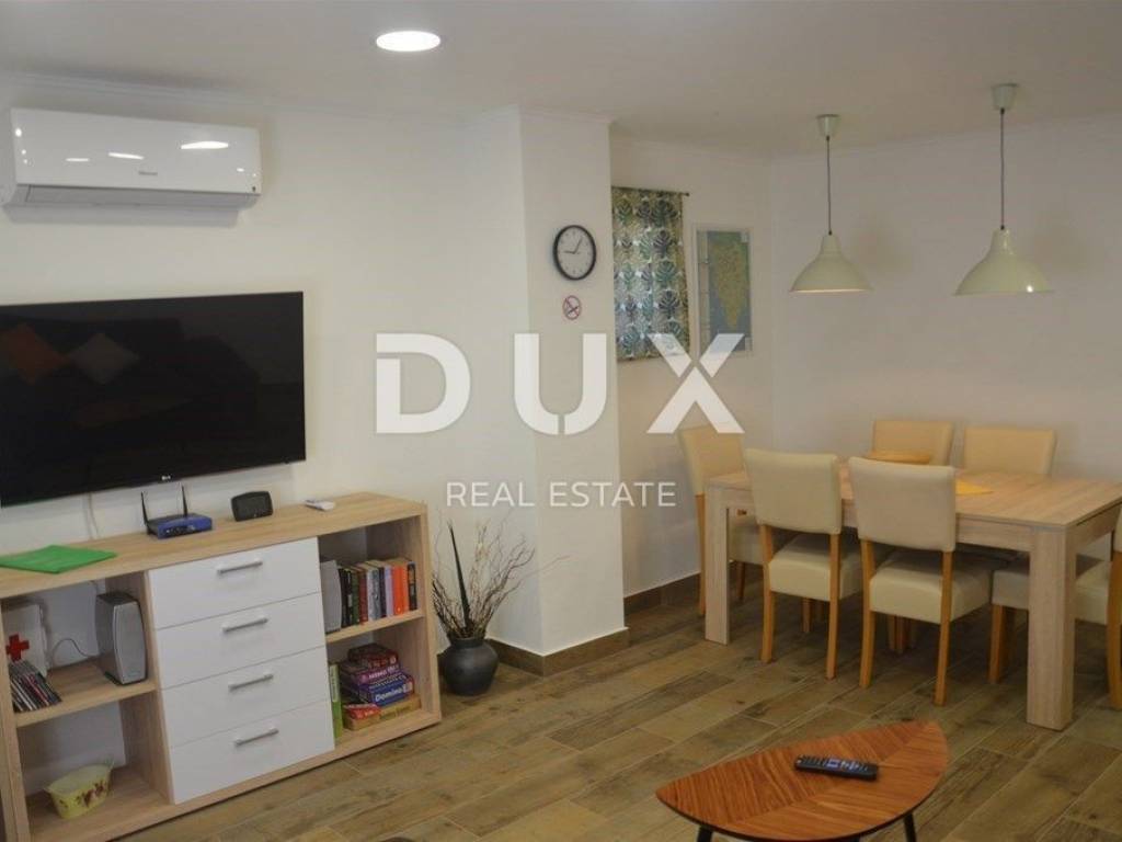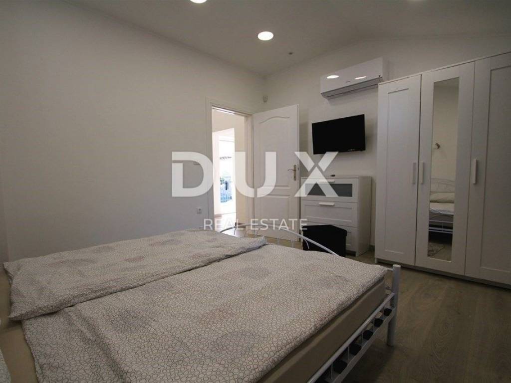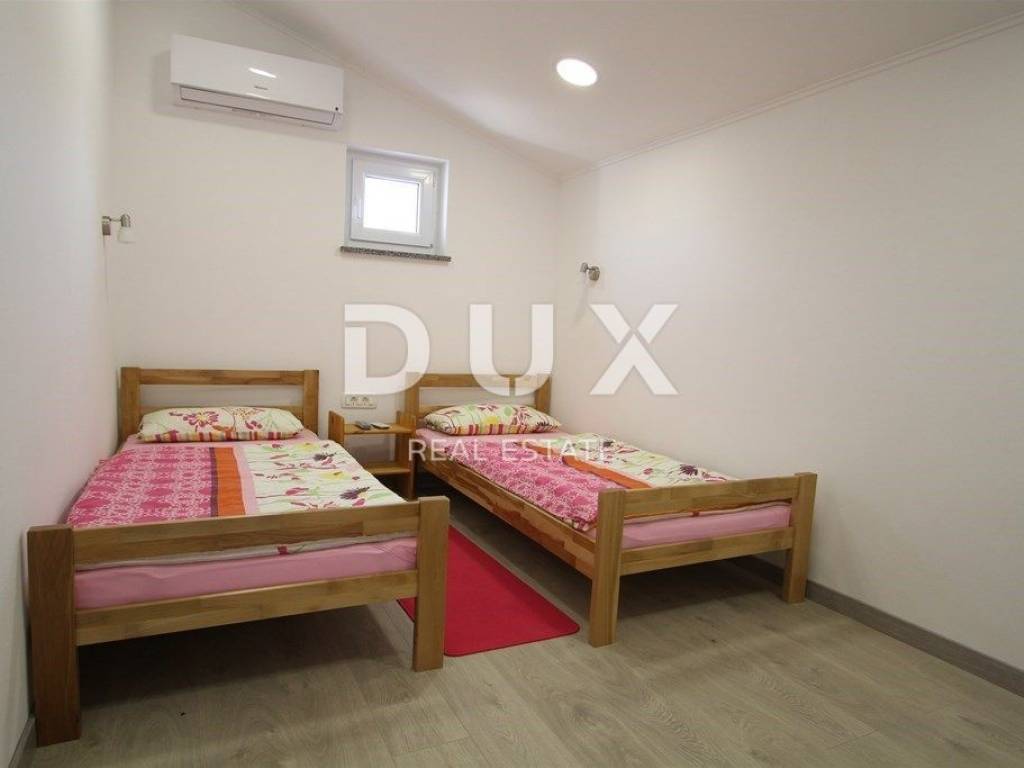 U prizemlju kuće nalazi se ulazni hodnik, spavaća soba sa kupaonicom, dnevni boravak sa blagovaonskim dijelom, potpuno opremjena kuhinja sa izlazom na dvorište gdje se nalazi natkrivena ljetna kuhinja i bazen.