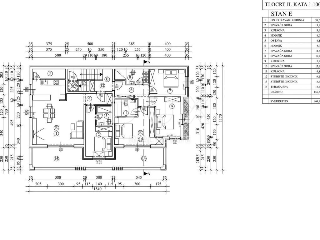 Predmet prodaje je stan površine 150,58 m koji se nalazi na drugom katu zgrade.