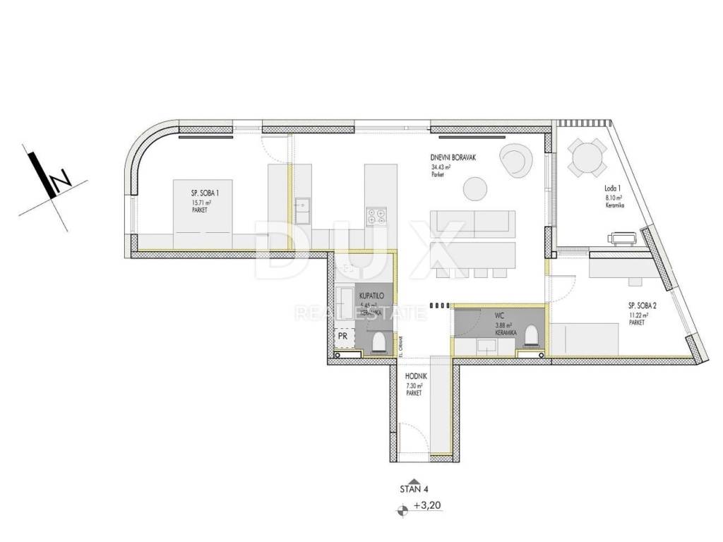 Ovaj stan u visokokvalitetnoj novogradnji je idealna prilika za komforan obiteljski život kao i za investiciju u svrhu turističkog najma.