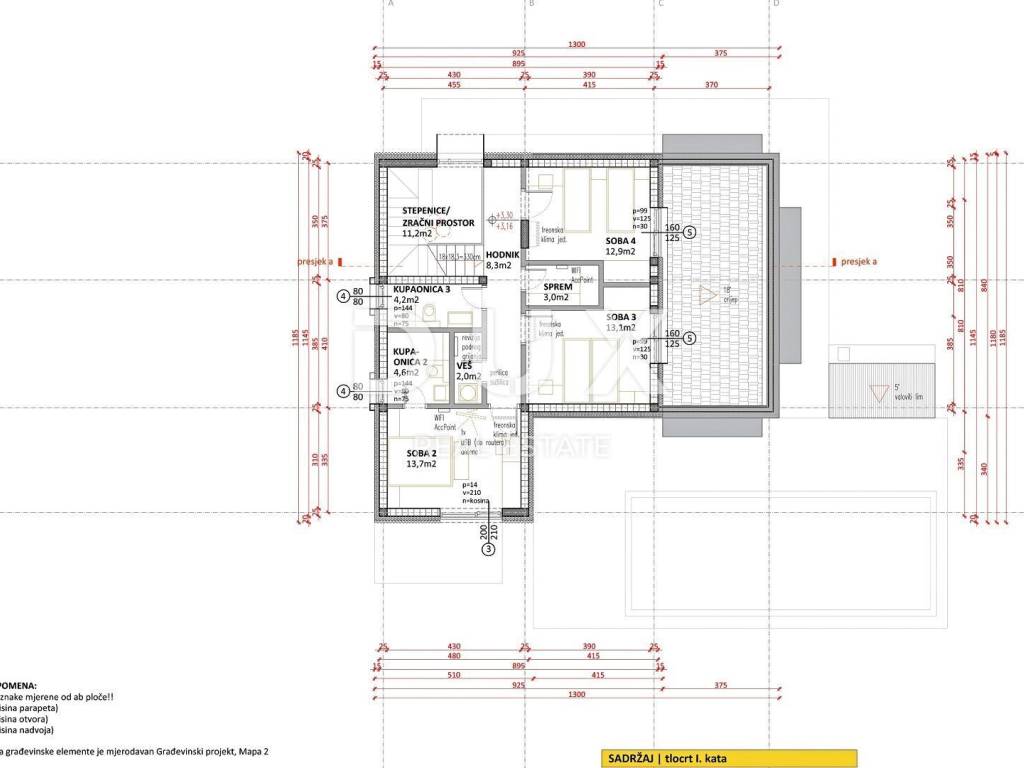 Kat se sastoji od tri spavaće sobe, dvije kupaonice, praonice rublja i ostave.