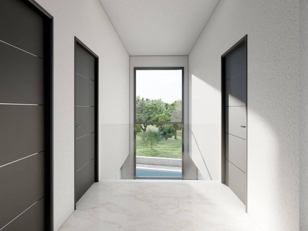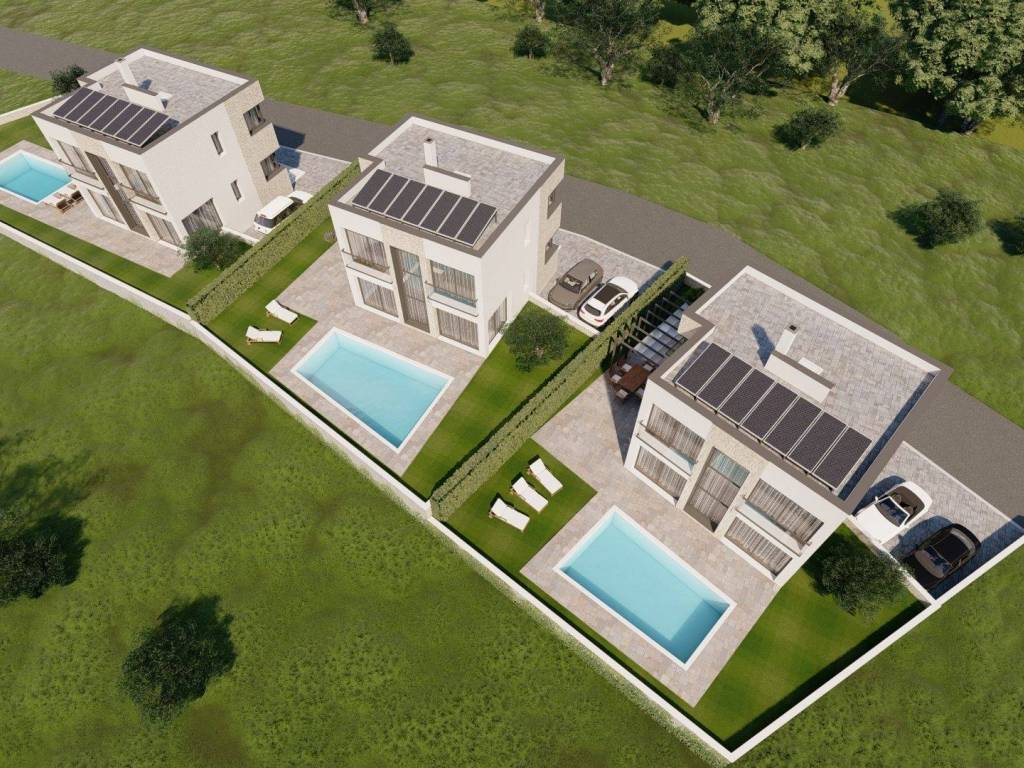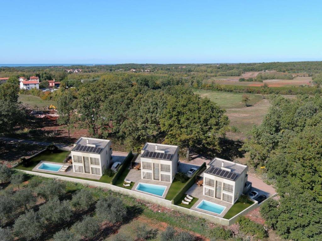 U okolici Brtonigle na mirnoj lokaciji prodaje se ekskluzivna, moderna vila s bazenom. Smjestila se na zemljištu od 441 m2, a ukupna stambena površina vile iznosi 150 m2 koji se protežu kroz dvije etaže. Prizemlje vile sastoji se od prostranog dnevnog boravka s kuhinjom i blagovaonom, kupaone, praone, ostave i wc-a. Unutarnje stepenice vode na kat koji se sastoji od tri spavaće sobe od kojih je jedna master s garderobom i dvije kupaone.