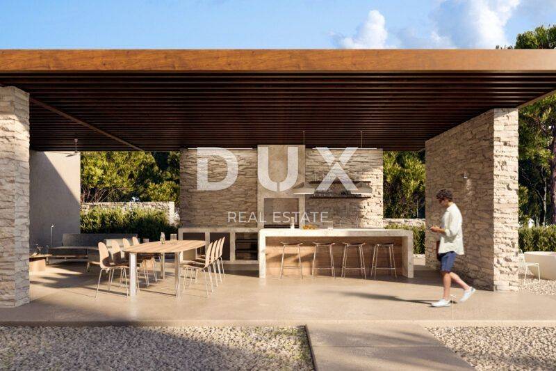 Vanjski dnevni boravak u potpunosti je natkriven, kako biste ga mogli koristiti tijekom svih vremenskih uvjeta. Uključuje prostor za sjedenje i zabavu, blagovaonu i vanjsku kuhinju s ugradbenim roštiljem i grillom, te kuhinjskim otokom idealnim za druženje s prijateljima i obitelji.