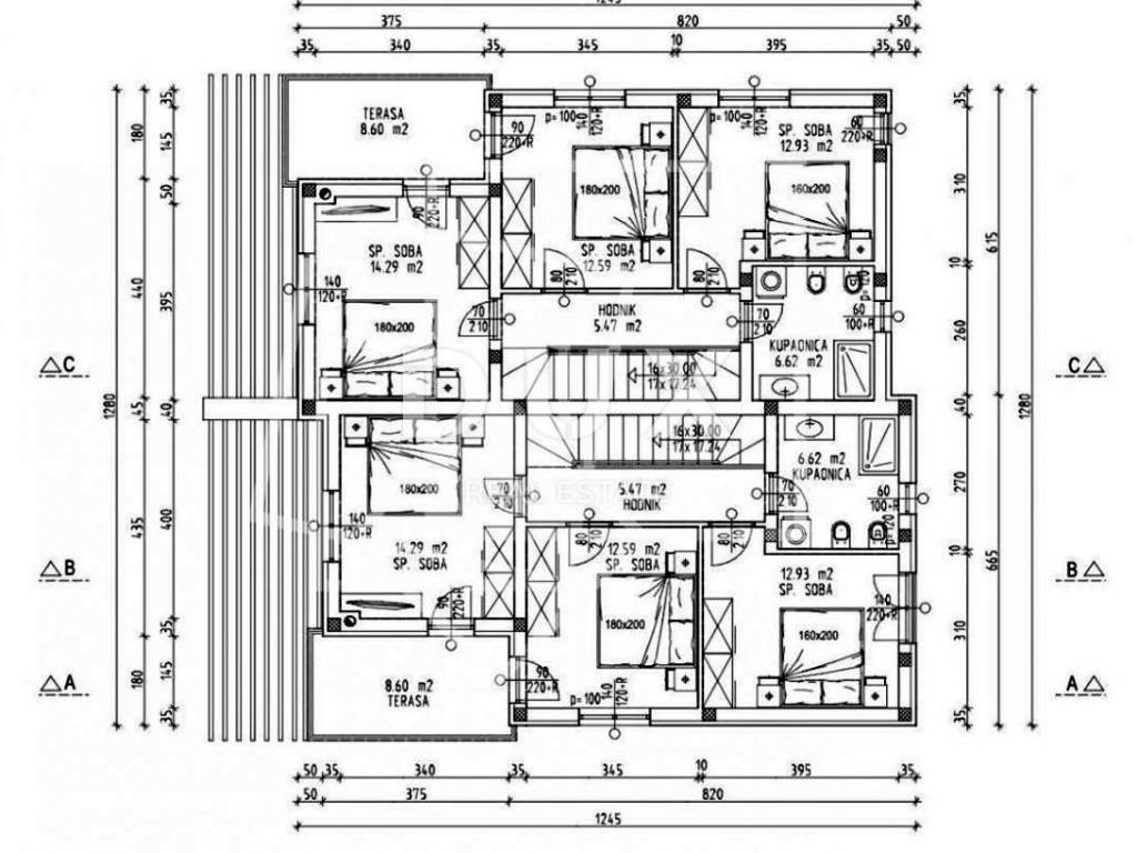 Kat se sastoji od tri spavaće sobe, kupaonice i terase.