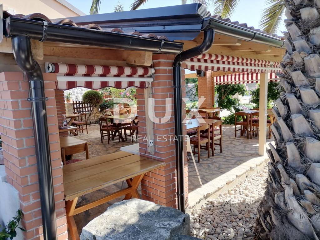 Poslovni prostor u sklopu kuće s odvojenim ulazom je RESTORAN s velikom zatvorenom terasom, jednom velikom natkrivenom terasom te dvije nenatkrivene terase.