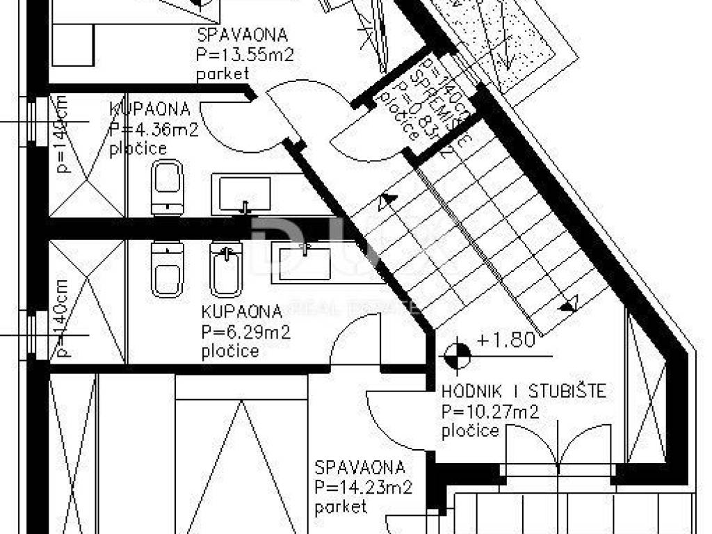 Unutarnjim stepenicama penjemo se na kat gdje imamo još dvije spavaće sobe, svaka sa svojom kupaonicom, za dodatnu privatnost među stanarima. Iz hodnika i spavaće sobe izlazi se na prekrasnu terasu koja pruža pogled na prirodu i ljepote okolnog krajolika.