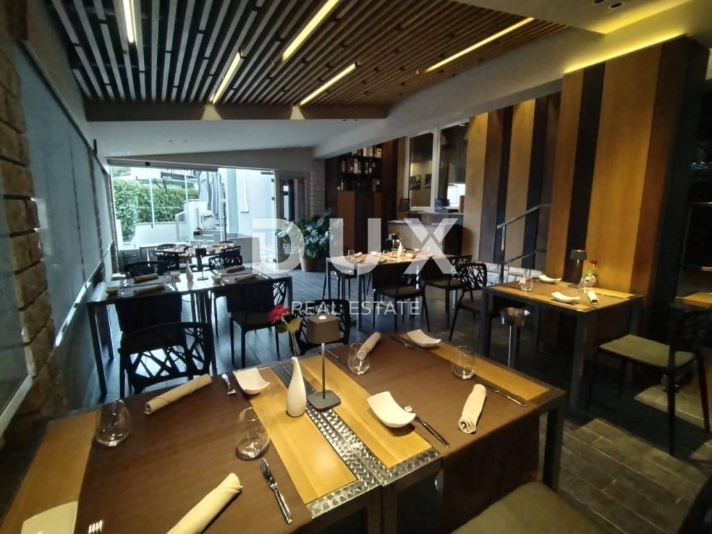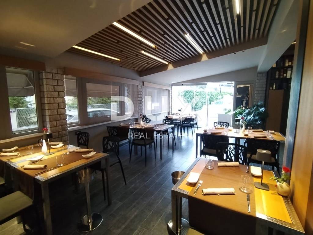 U prizemlju zgrade se nalazi poslovni prostor koji predstavlja ugostiteljski objekt (restoran) koji se sastoji od ulaznog prostora sa šankom, salom, kuhinjom, slastičarnom, sanitarnih čvorova, natkrivene i zatvorene terase, vanjske terase, bara i pomoćnih prostora, ukupne površine 214m2. Isto tako i bar površine 30m2.