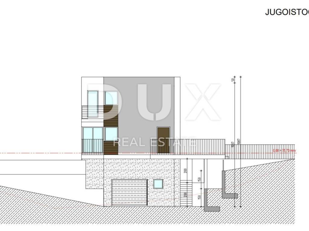 Građevinsko zemljište površine 900 m2 sa projektom za gradnju samostojeće obiteljske kuće sa tri etaže ukupne neto stambene površine od 253 m2 odnosno cca 90 m2 po etaži. Plaćen je komunalni doprinos i priključci struje i vode. Teren je očišćen i napravljena je temeljna ploča.