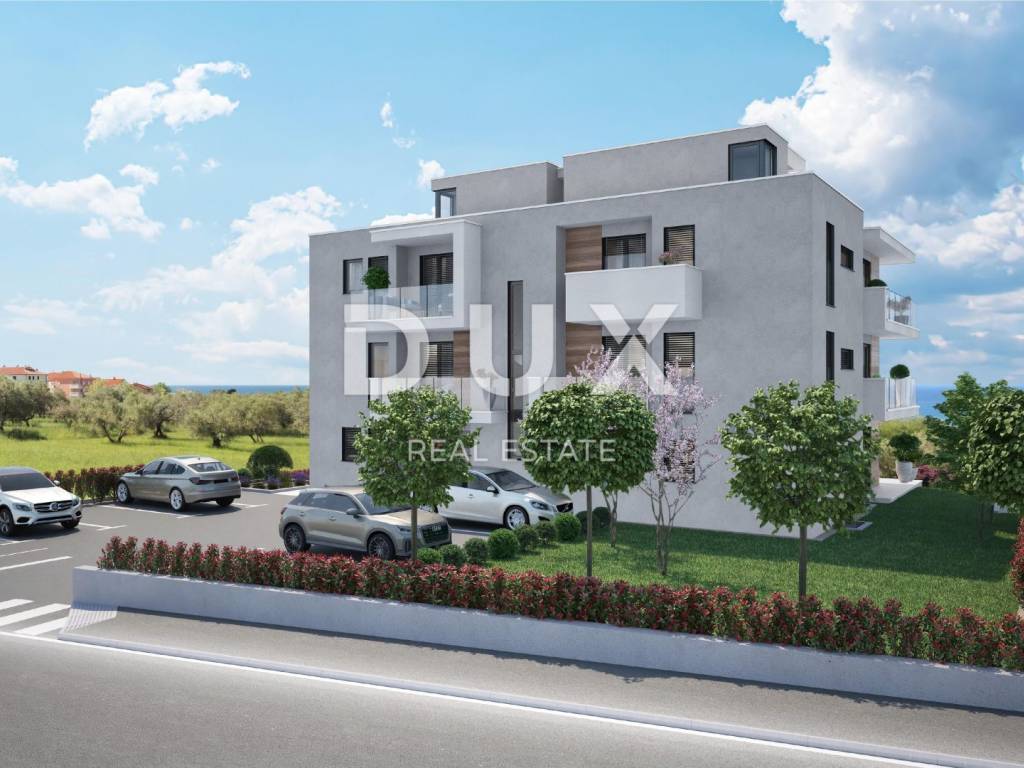Stan je smješten u prizemlju nove moderne zgrade sa liftom. Ukupna površina stana iznosi 93 m2. Sastoji se od dnevnog boravka sa kuhinjom i blagovaonom, 3 spavaće sobe, 2 kupaone, hodnika dvije terase od ukupno 10 m2 sa kojih se pruža predivan pogled na more i maslinike. Građen je od visokokvalitenih materijala sa podnim grijanjem na toplinsku pumpu i hlađenjem na klima uređaje. Stanu pripada okućnica površine od 78 m2, 1 parkirno mjesto na korištenje, vlastito spremište te se nudi mogućnost kupnje i uređenog podruma kvadrature između 33-37 m2 sa wc-om.
