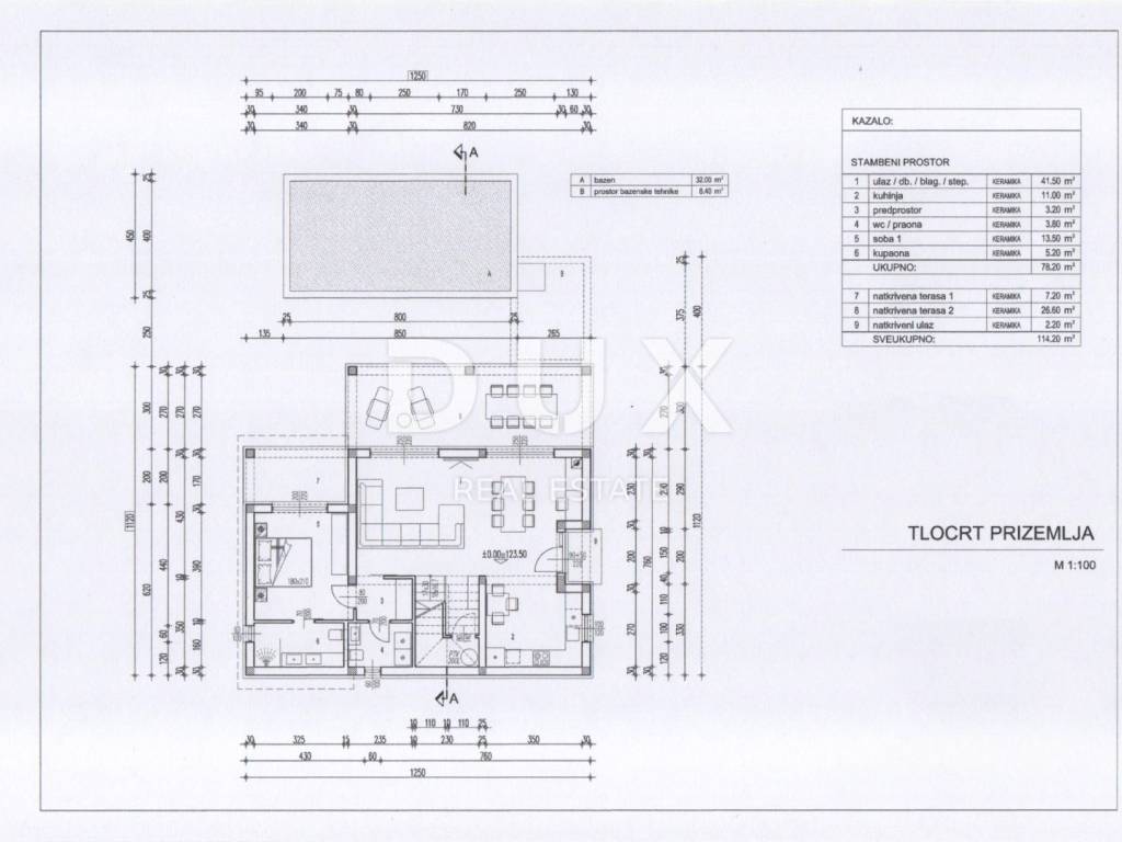 Ukupne je površine 192m2, sastoji se od prizemlja i kata.