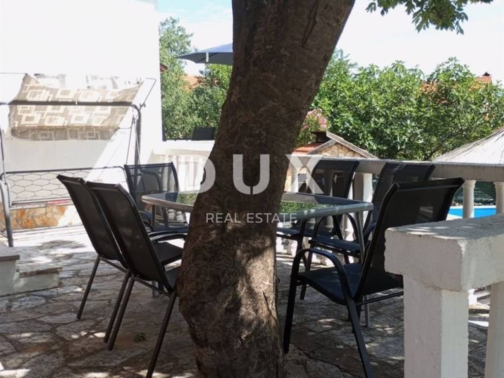 Sastoji se od dva stana. Manji ima jednu spavaću sobu, kupaonicu te dnevni prostor sa kuhinjom i izlazom na terasu. Veći stan ima dvije spavaće sobe, kupaonicu i dnevni prostor sa kuhinjom i izlazom na svoju terasu. Okućnica je zajednička, uređena , te uz bazen i sunčalište odvojen je dio za opuštanje, te grill zona. U suterenu kuće nalazi se spremište od 13 m2 za razne namjene. Grijanje i hlađenje je putem klima uređaja. Postoji mogućnost grijanja na drva.