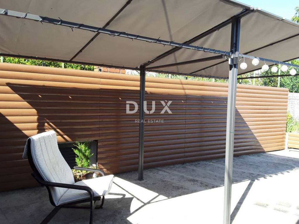 Kuća se nalazi na privatnom, ograđenom zemljištu od čega je ulaz zajednički dio okućnice a stanu isključivo pripada veliki vrt koji nudi velike moguićnosti. Kuća ima novi krov te je stan uredan i održavan no u unutrašnjosti potrebno je djelomično osvježenje. Grijanje u stanu na struju (termo peć) no postoji dimnjak u kuhinji pa se može ugraditi peć na pelete ili drva. No zbog vrlo dobre i blage klime dovoljno bi bilo ugraditi klima uređaje.
