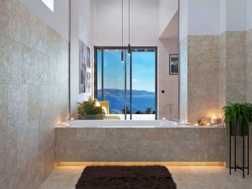 Pored skladnog spoja tradicionalnih i modernih materijala, ova elegantna nekretnina ujedinjuje otvorenost ka beskonačnom horizontu morskih prostranstva panoramskim ostakljenjem prostorija dok istovremeno čvrsto stvara harmoničnu vezu s okolnom prirodom ekstenzivnim zelenim krovovima i prirodnim materijalima.