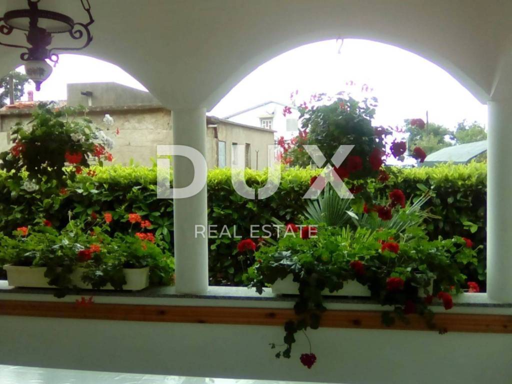 Ova lijepa i poželjna kuća dobre kvalitete izgrađena je na 2 etaže, proteže na ukupnoj površini 240 m2, sastoji se od 5 apartmana od kojih su 2 u prizemlju. Na prvom katu se nalaze još dva jednosobna apartmana i studio apartmana s pogledom na more. Idealna je za bavljenje turizmom. Kuća ima prostrano i lijepo dvorište. Dvorište ima jedan pomoćni objekt i ima mogućnost parkinga za više vozila. Također, valja napomenuti da kuća ima i djelić pogleda na more te priobalje.