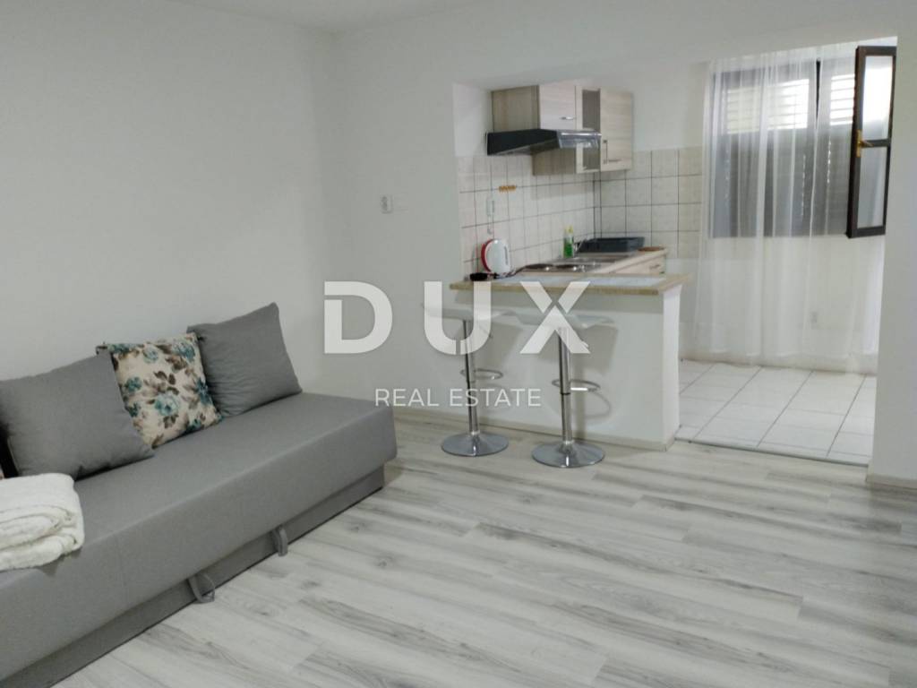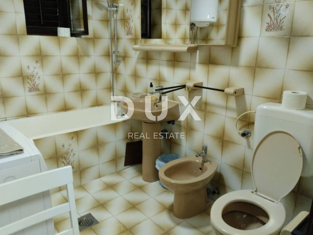 Stan se nalazi u samom gradu, na tek 600 m od mora i svih potrebnih sadržaja. Stan se u naravi sastoji od 2 jedinice, jednog stana s 2 spavaće sobe, kuhinjom, ostavom, kupaonicom, te drugog stana, studio apartmana s kuhinjom i kupaonicom. Svaki stan ima zaseban ulaz, te odvojene priključke struje i vode. Po dokumentaciji vodi se kao jedan veliki stan od 86 m2. Postoji mogućnost da se stanovi spoje u jedan veliki.