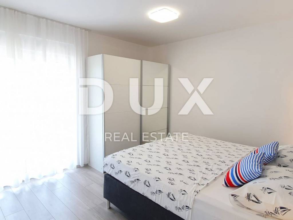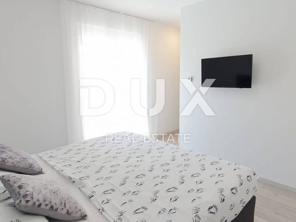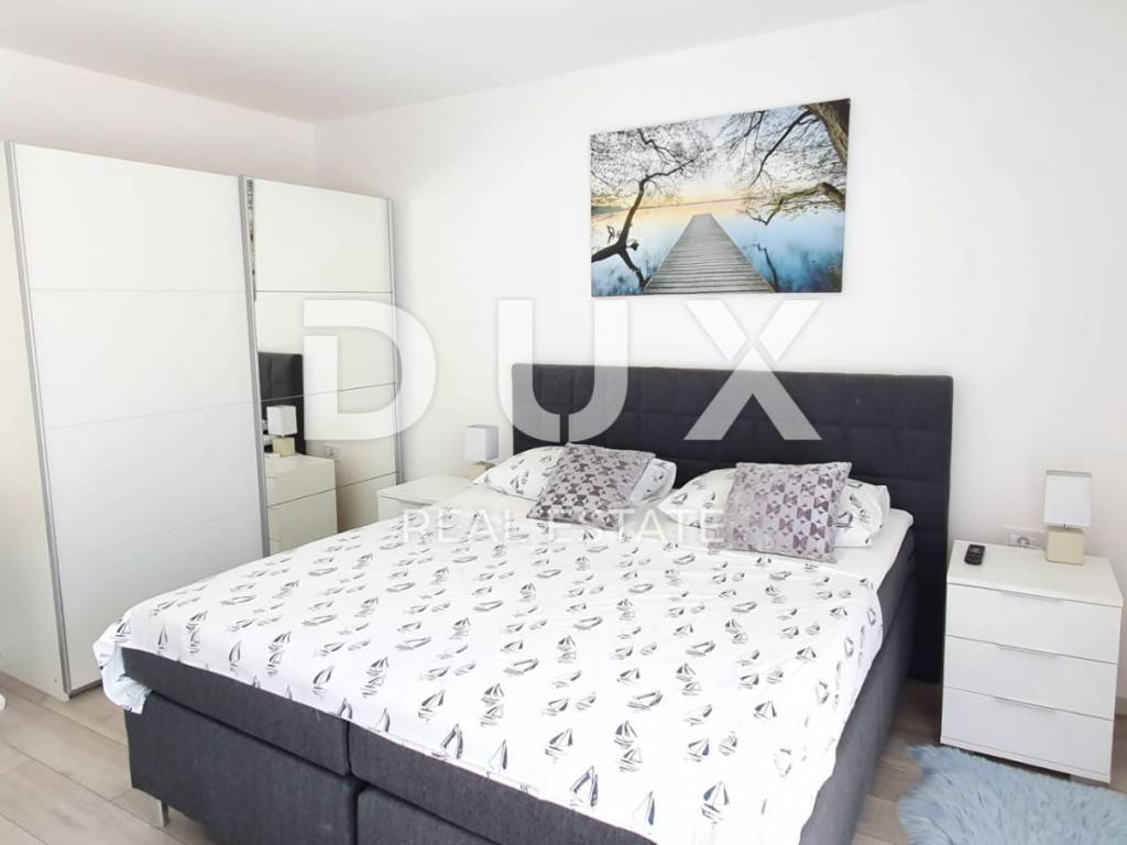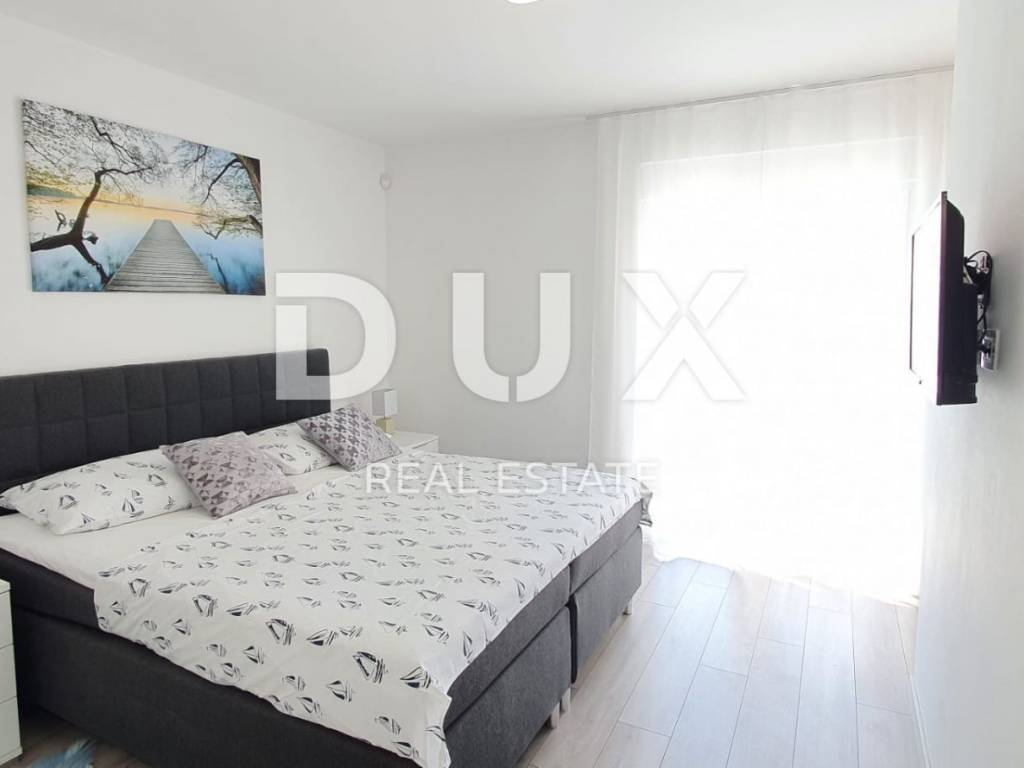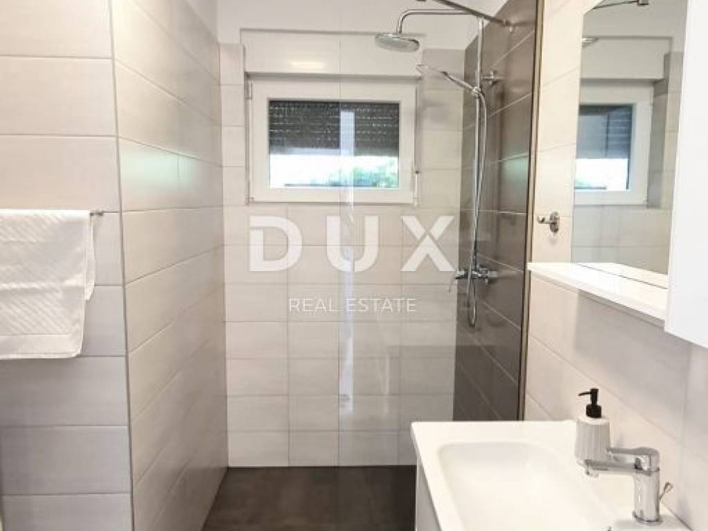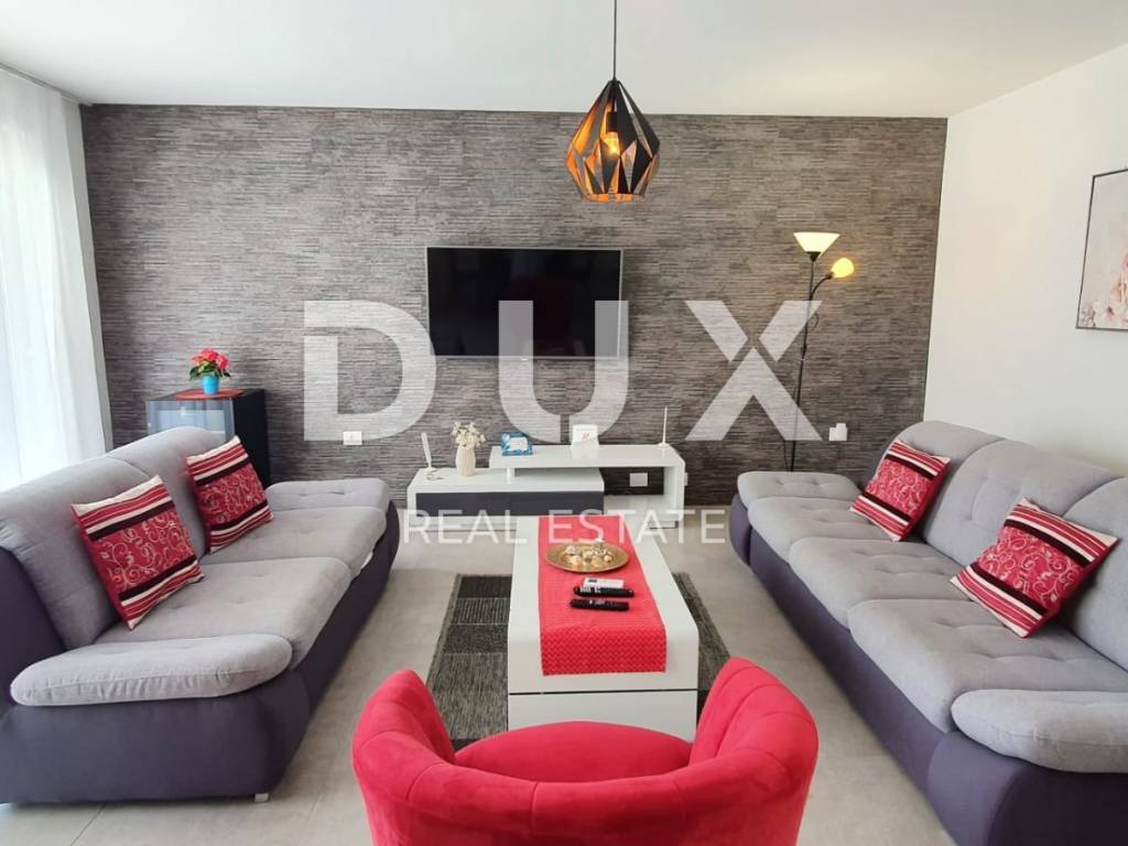 Ovo moderno opremljena vila sastoji se od prizemlja i kata. U prizemlju se nalazi kuhinja s blagovaonicom, dnevni boravak, ostava, kupaonica te jedna spavaća soba s vlastitom kupaonicom. Zahvaljujući svjetlosti koja dolazi sa svih strana, kao i detaljima koji su bili pažljivo promišljeni vila ima toplu i gostoljubivu atmosferu. Na prvom katu nalaze se još dvije spavaće sobe svaka s vlastitom kupaonicom i terasom. Iz dnevnog boravka kroz staklenu stijenu izlazi se na polunatkrivenu terasu, dok se na ograđenoj i uređenoj okućnici smjestio bazen od 29m2 sa slanom vodom, kamin, dječje igralište i parking.
