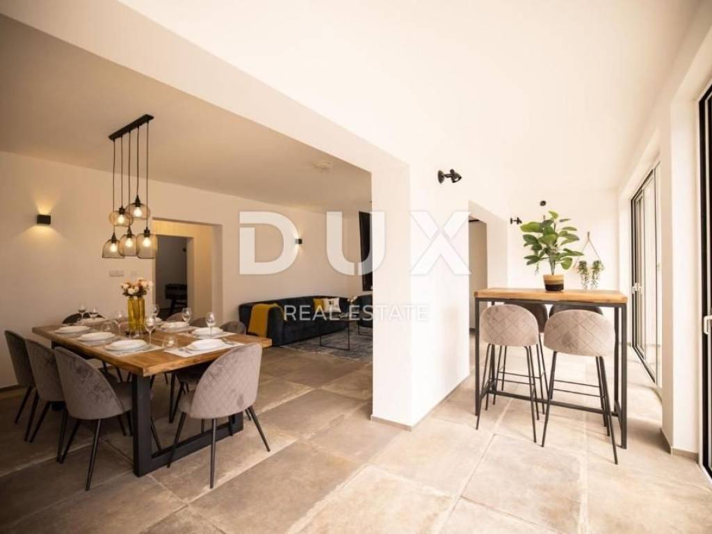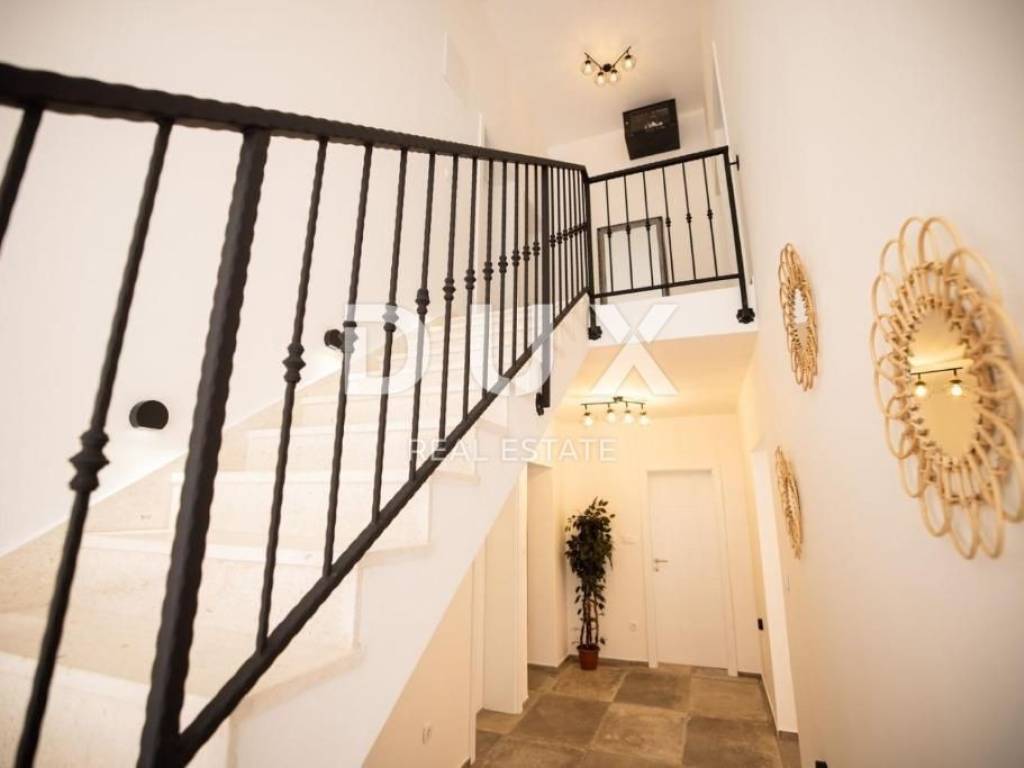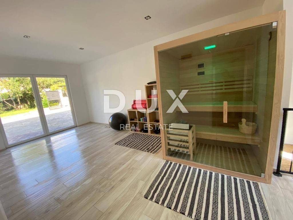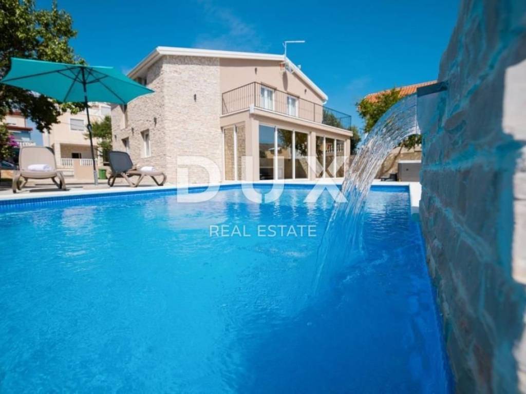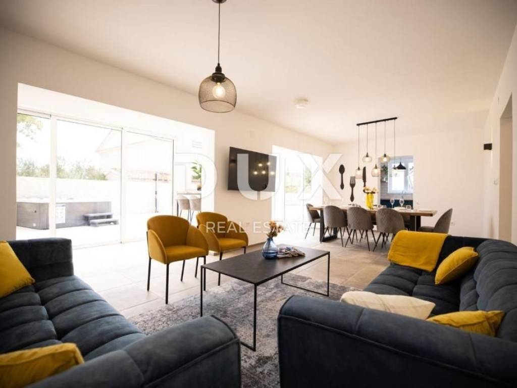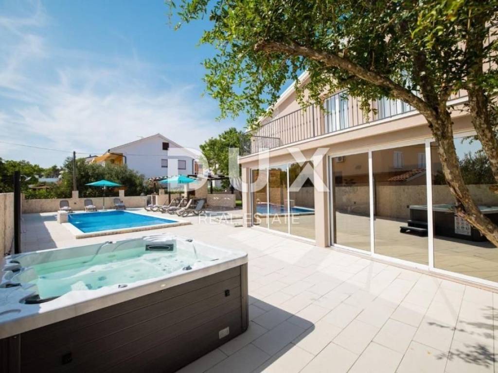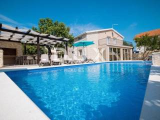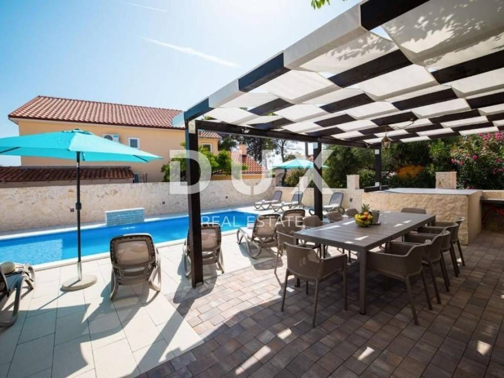 Prodaje se predivna vila na otoku Viru smještena na izvrsnoj lokaciji. Vila je izgrađena 2021.g sa vrhunskim materijalima, pažljivo biranim namještajem, vanjskim bazenom i prekrasno uređenom okućnicom. Vila se sastoji od 5 odlično opremljenih master soba na katu. Ulaz u vilu sa galerijom gdje se smjestio komforan dnevni boravak, kuhinja i blagovaona te zimski vrt. U podrumu se nalazi soba za relaksaciju sa saunom, fitness spravama i igraonicom. Dvorište površine 575m2 je ograđeno u potpunosti ogradom visine 130-180cm. Kombinacija zelene površine s stablima trešnje, višnje, jabuke, badema i šipka te tlakavaca i benkovačkog kamena. Ispred kuće napravljen je grijani vanjski bazen sa ležaljkama i suncobranima, veliki jacuzzi za 5 osoba, roštilj i stol za 10 osoba za druženje. Ova vila predstavlja veliki potencijal za izgradnju vlastitog posla i opuštanja u krajoliku.