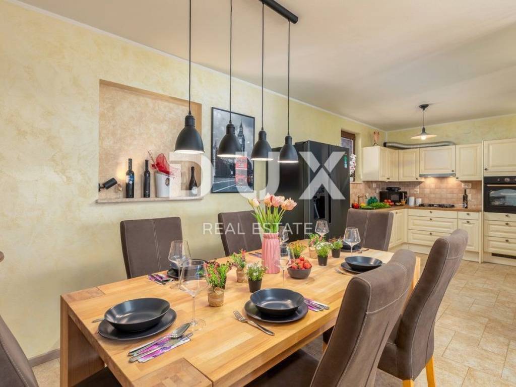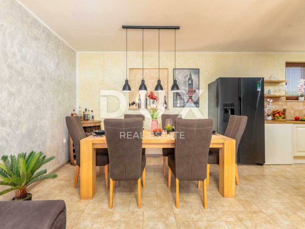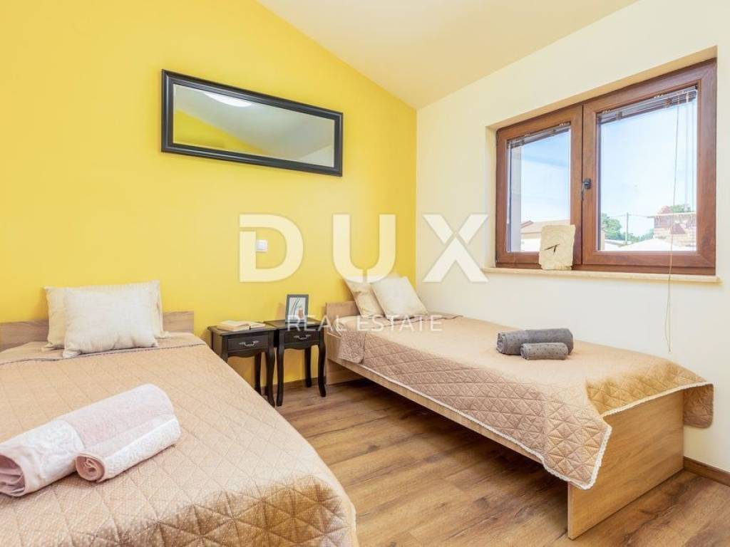 Nedaleko od centra grada Pule i prvih plaža u Ližnjanu, smjestila se ova prekrasna kuća za odmor. Nekretnina se nalazi na zemljištu od 409m2 te je ukupne stambene površine 140m2. Proteže se kroz prizemlje i prvi kat. U prizemlju je smješten ulazni predprostor, dnevni boravak s kuhinjom i blagovaonicom, kupaonica te spremište. Unutarnjim stubištem penjemo se na prvi kad gdje se nalazi zajednički hodnik, tri spavaće sobe te kupaonica. Prekrasna i u potpunosti ograđena okućnica sadrži bazen od 30m2, sunčalište, vanjski tuš te zelenu površinu.