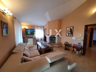 Stan odaje potpuno namješten. Sadrži veliki dnevni boravak i kuhinju open space koncepta, 3 spavaće sobe, kupaonu i wc, hodnik i velike terase s kojih se pruža panoramski pogled na more. Stan ima i kamin na pelete za grijanje te 3 klima uređaja.